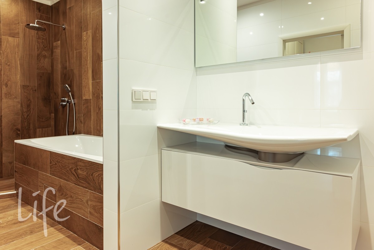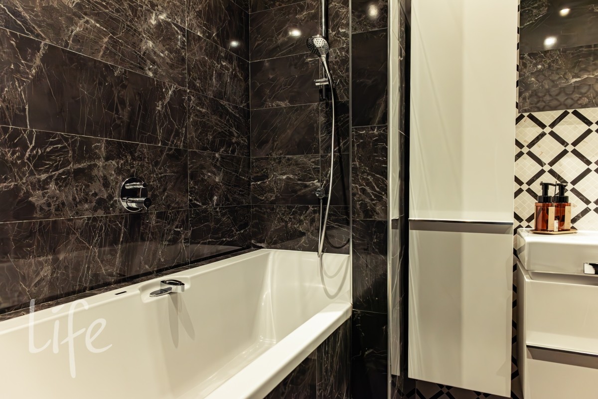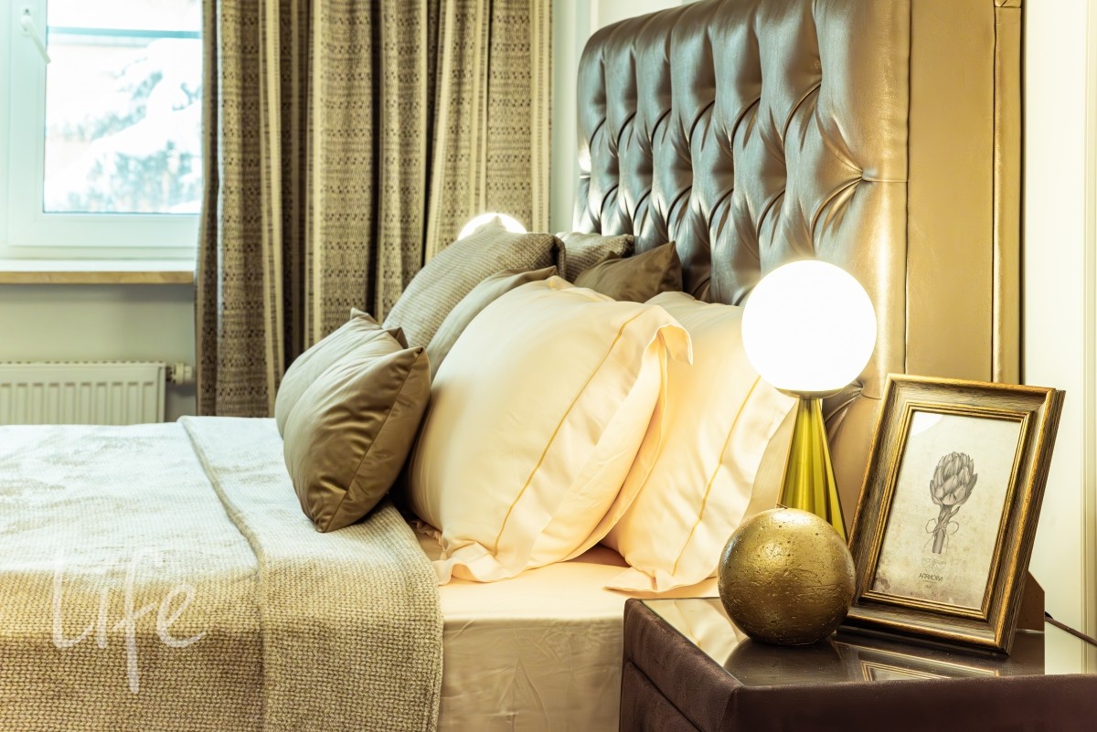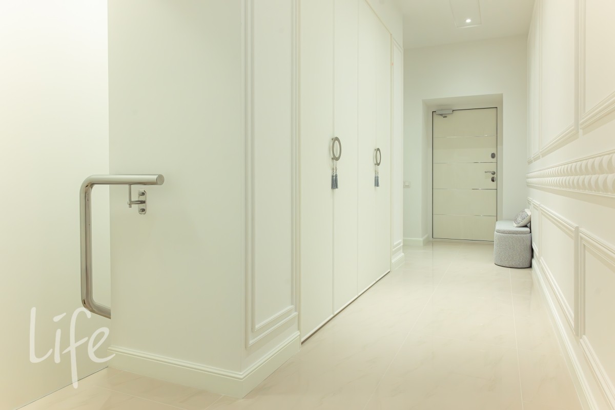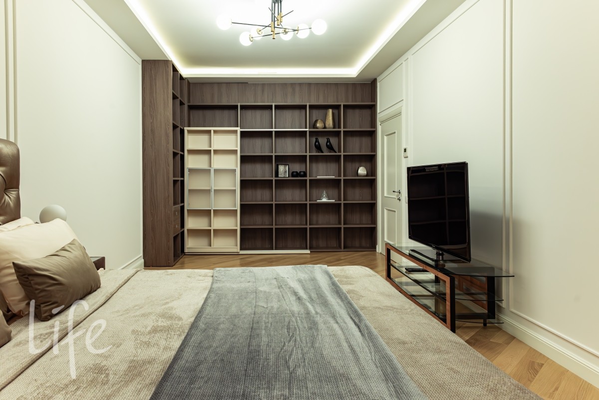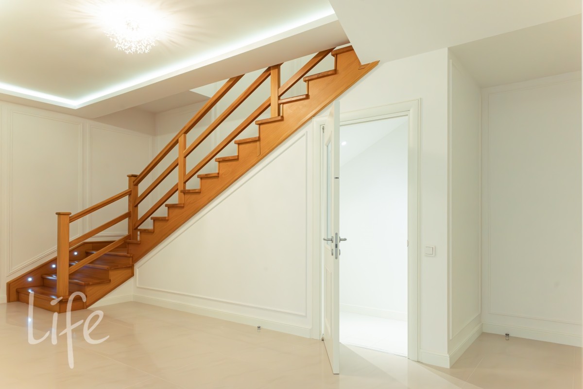 Интерьер выполнен в современном классическом стиле, в светлых тонах, со вкусом подобрана мебель. Напольное покрытие из массива дуба, мраморные подоконники. Установлена система кондиционирования помещений, теплые полы. Есть спутниковое телевидение, высокоскоростной интернет.