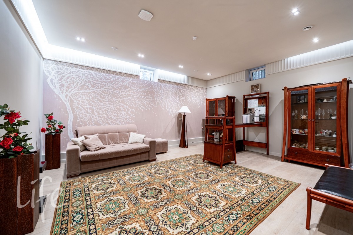 Цоколь: бильярдная, тренажерный зал, постирочная, кладовая, комната отдыха, сауна, душевая, с/у, котельная.