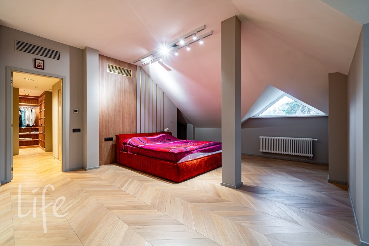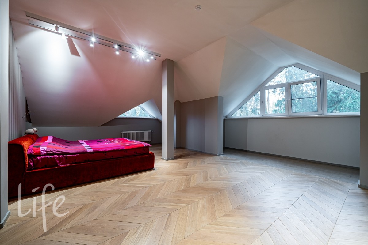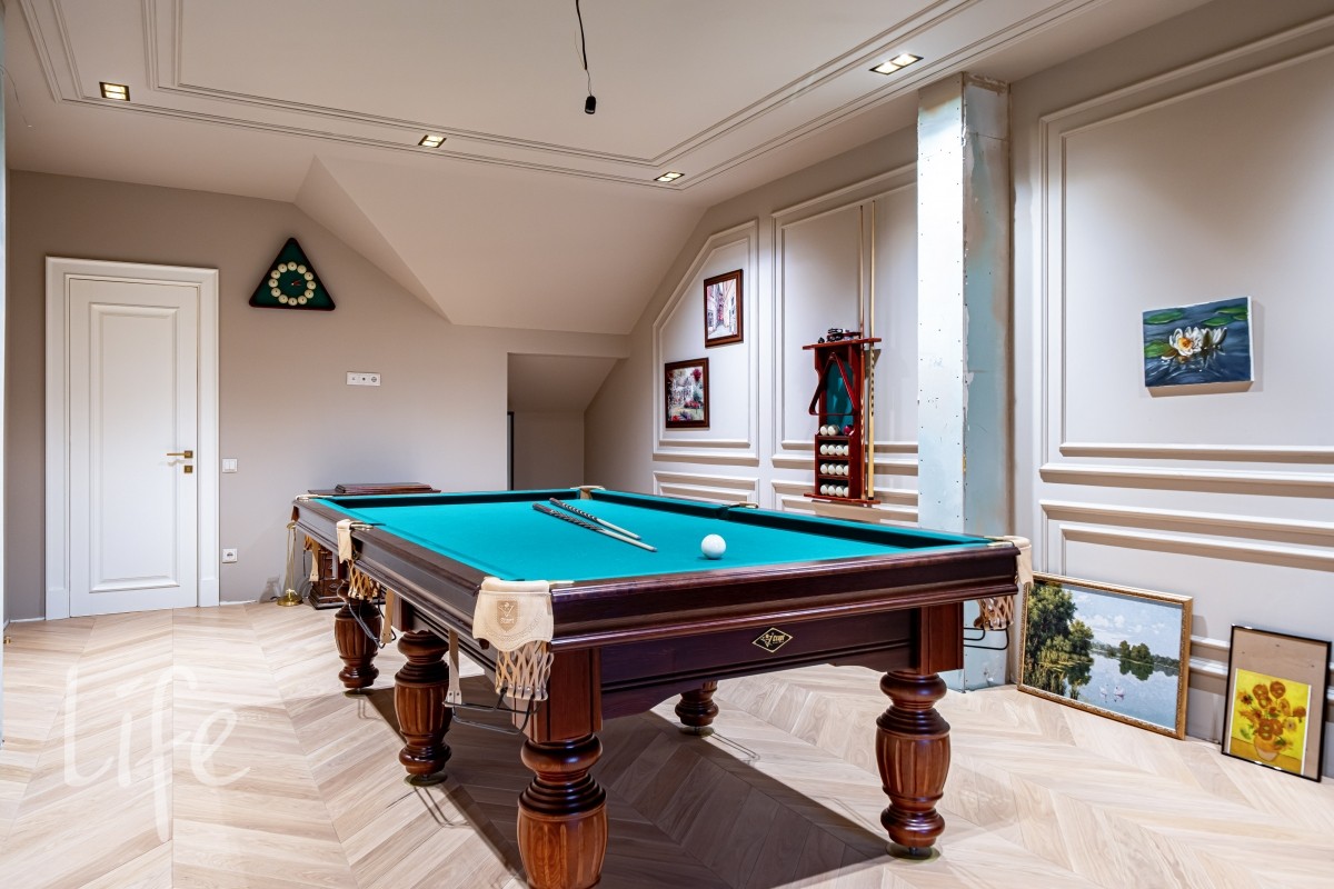 Мансарда: бильярдная, изолированная комната, библиотека.