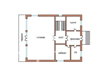 1 этаж: прихожая, холл, гостиная, кухня-столовая, гардероб, с/у, терраса.