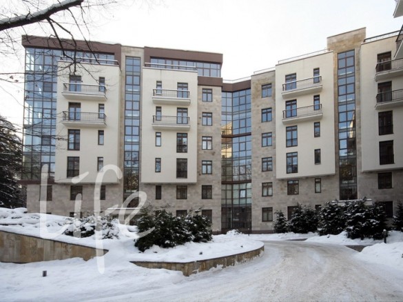 Элитный жилой комплекс категории "А". Монолитно-железобетонный каркас с кирпичными стенами. Фасад - бежевый природный доломит. Секции разделены между собой стеклянными зимними садами. Панорамные витражные окна и французские балконы, зимние сады. Холлы и места общего пользования - натуральный камень, "венецианская" штукатурка, латунные перила.
