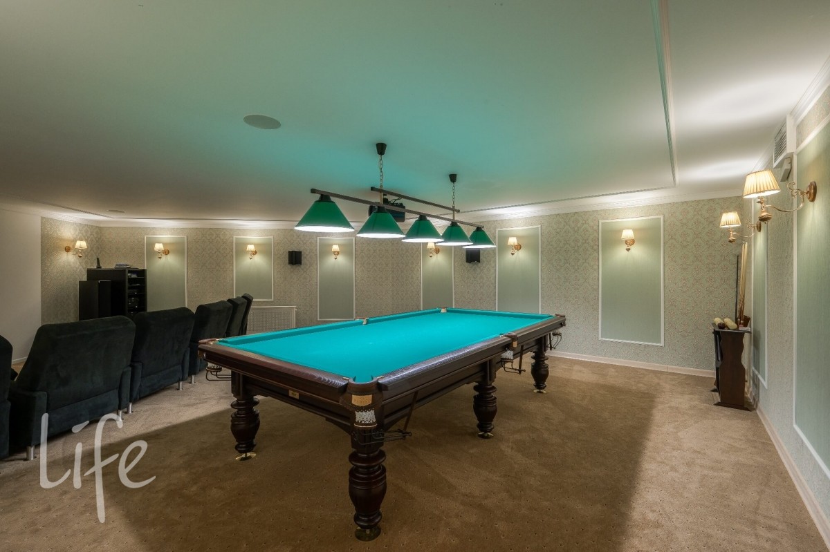 Цоколь: спа-зона, хаммам, сауна, гостиная, бильярдная-кинотеатр, холл, котельная, постирочная, коридор, хоз. комната.