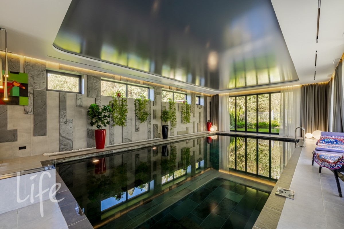 В доме есть все - и даже больше - что необходимо для жизни и отдыха, на любой вкус! Хамам, сауна, зимний сад - чтобы расслабиться... Бассейн с шикарным видом на лес, тренажерный зал, скалодром - чтобы быть в тонусе... И даже - винный погреб и морской аквариум - просто для души.