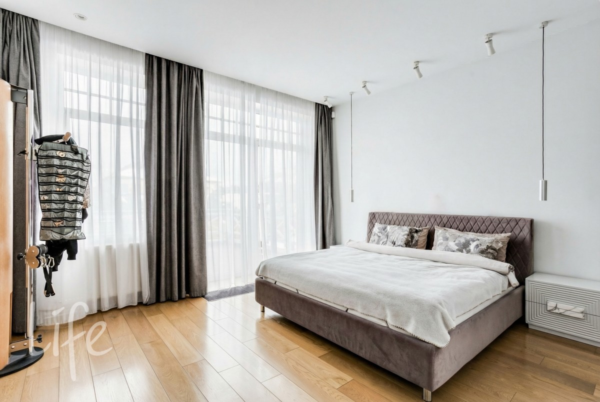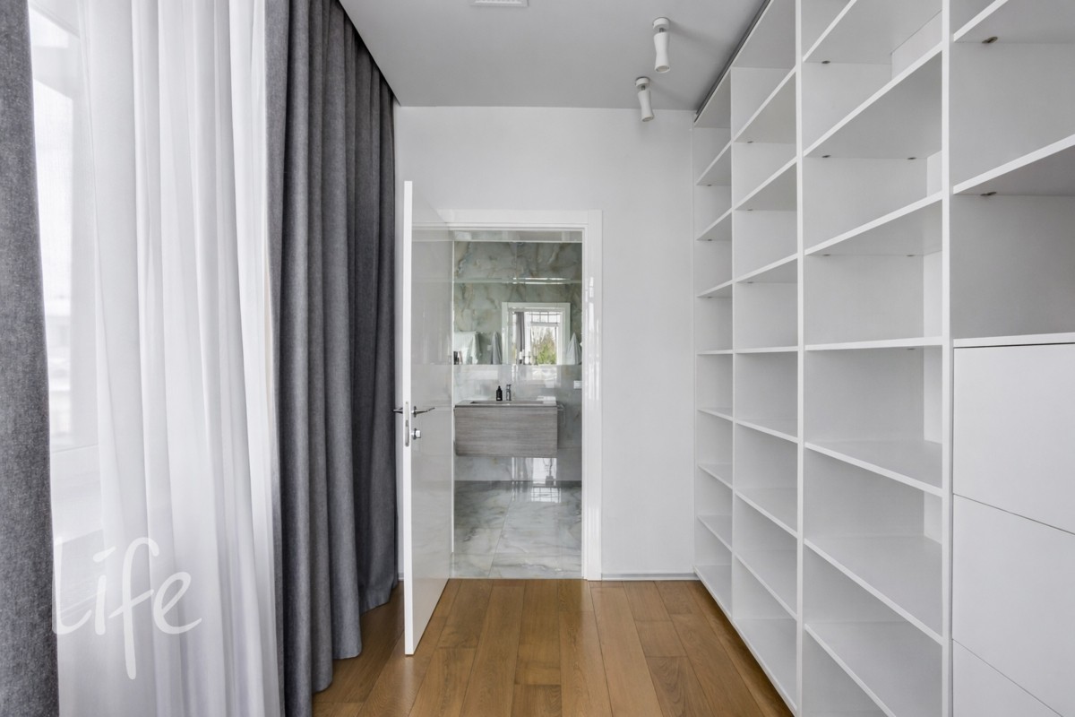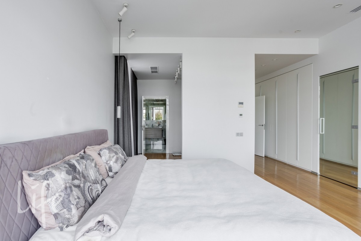 Хозяйская спальня с двумя гардеробными и просторным санузлом с прекрасной ванной.