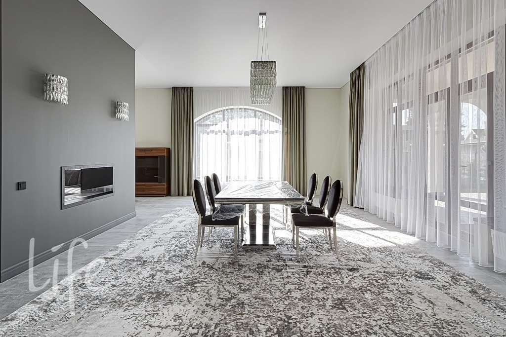 1 этаж: хол, гостиная с камином на две стороны, столовая, открытая кухня, с выходом на террасу с зоной барбекю, кабинет, гостевая спальня, бассейн 15 на 5 метра, сауна с зоной отдыха и тренажерном залом