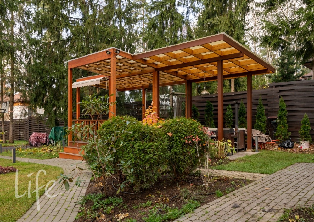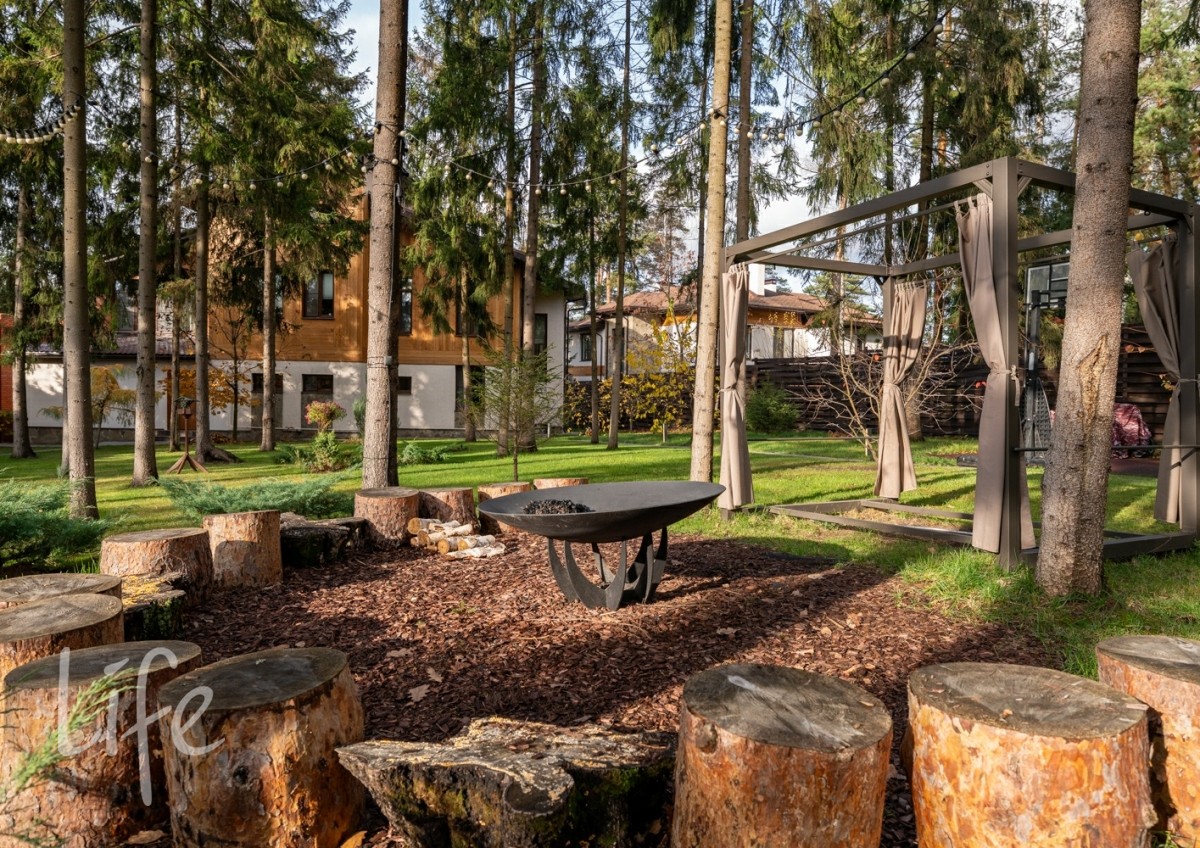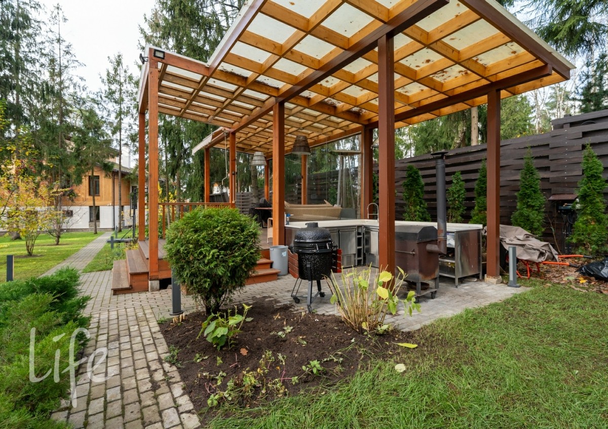 Дом расположен в охраняемом коттеджном поселке на 1-ом Успенском шоссе. Рядом инфраструктура Лапино и Горок 8: фитнесс-центр с бассейном, клинический госпиталь Лапино, школа «Сосны», английский детский сад, ТЦ Лиль, супермаркет Перекресток, аптека, рынок, рестораны и т.д.. Выезд на новую платную дорогу в 5 минутах езды от поселка.