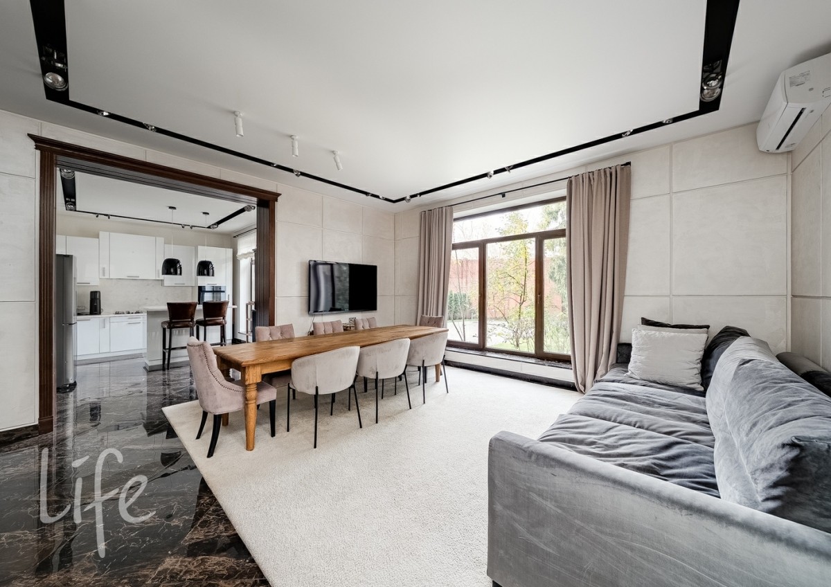 В доме выполнен высококачественный ремонт в неоклассическом стиле с использованием премиальных отделочных материалов.