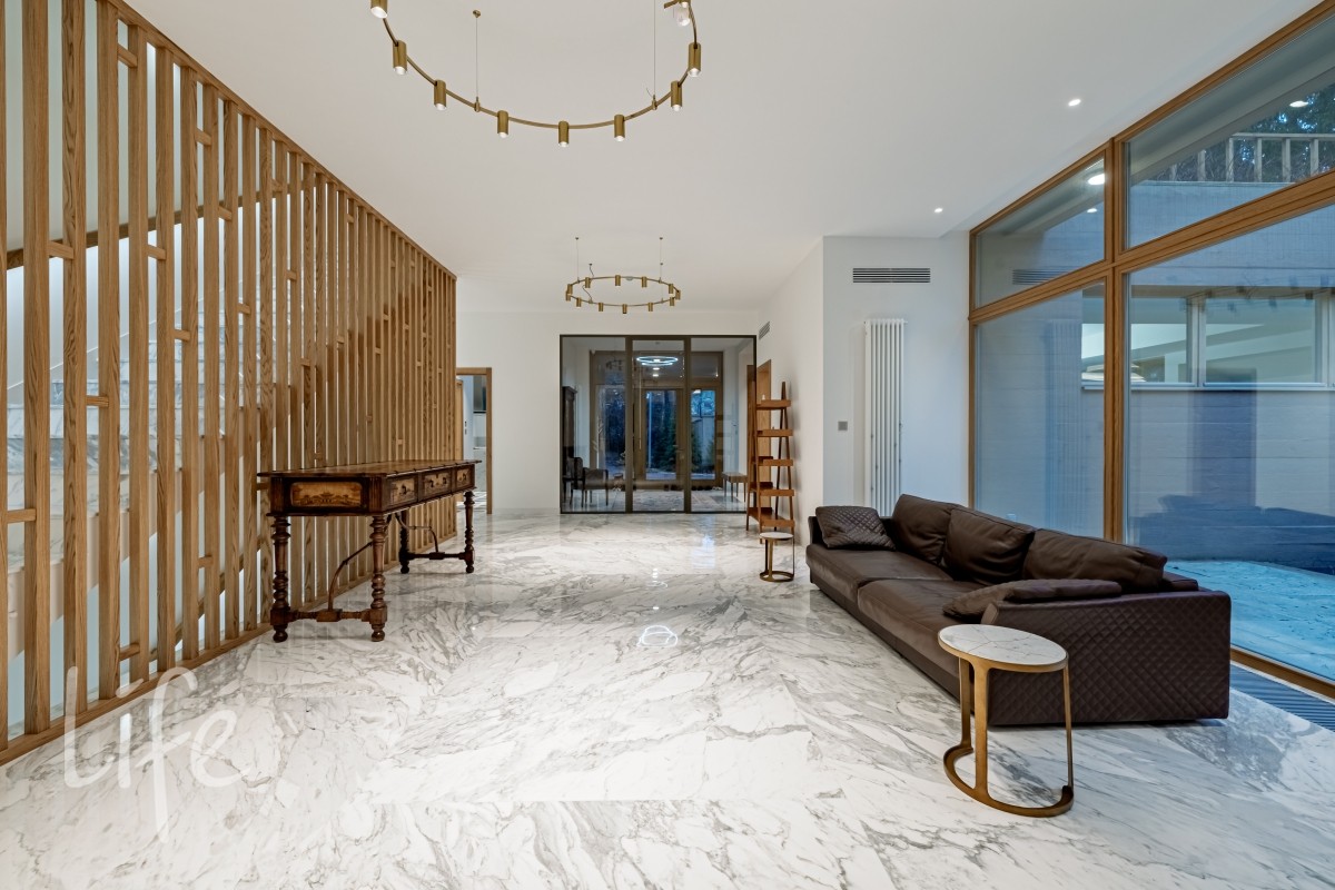 Комфортная планировка с шестью спальнями, гостиной, зоной СПА с бассейном никого не оставит равнодушным и подойдет большой, дружной семье.
