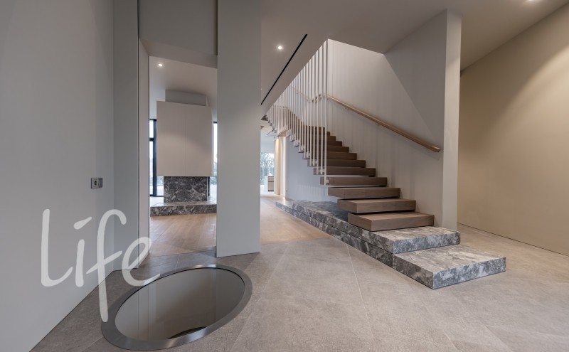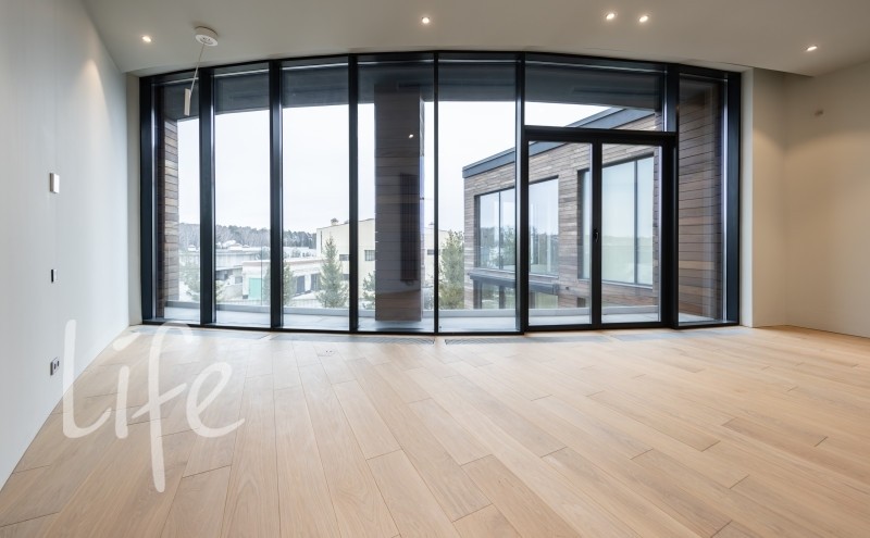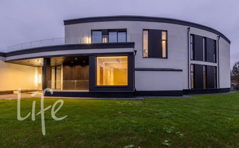 Дом строили для себя, поэтому не экономили на инженерии и отделке. Выполнена дорогостоящая гидроизоляция за 35 млн рублей, поставлены самая последняя модель окон фирмы Allutech с максимальной площадью остекления, что создает потрясающие виды.
