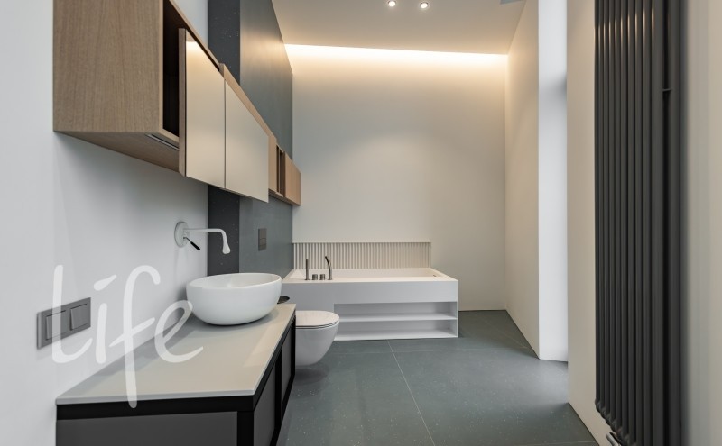мастер-блоке - ванная с переливом, тропический душ с системой водопада, смарт-стекло вместо внешней стены.