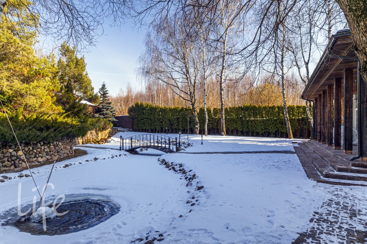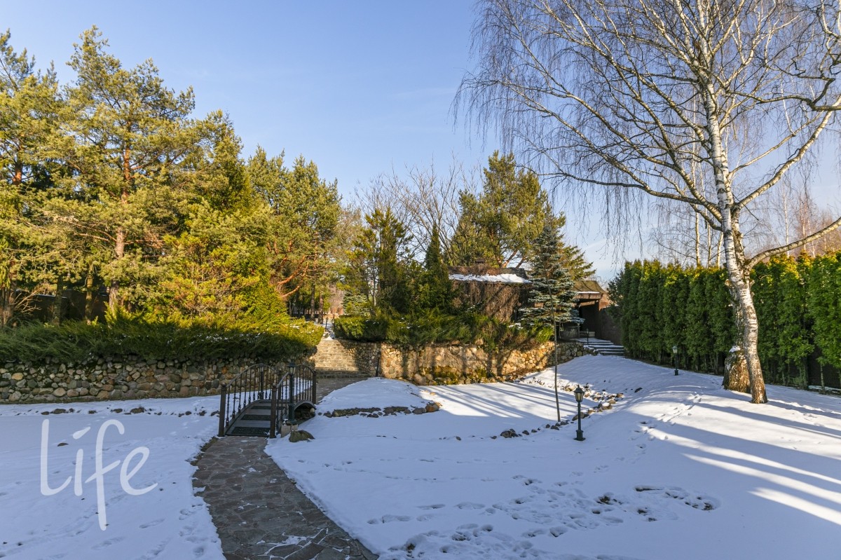 1-й ярус- основной дом, домик для охраны, пруд с водопадом , большим количеством разной рыбы и лилиями.