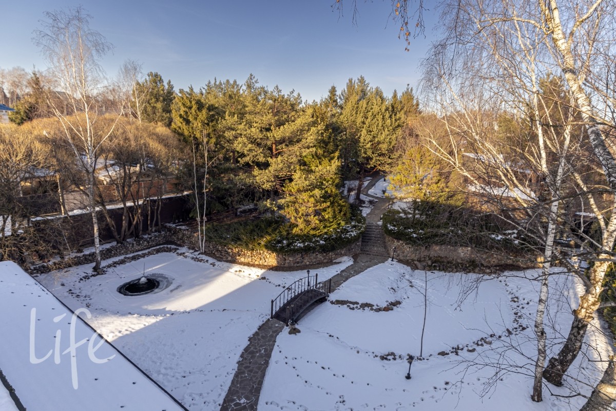 3-й ярус- яблоневый и вишневый сад. Отдельный въезд. Дом для персонала 200кв.м с гаражом на 2 машины. Отдельно стоящий сруб, баня 50кв.м .