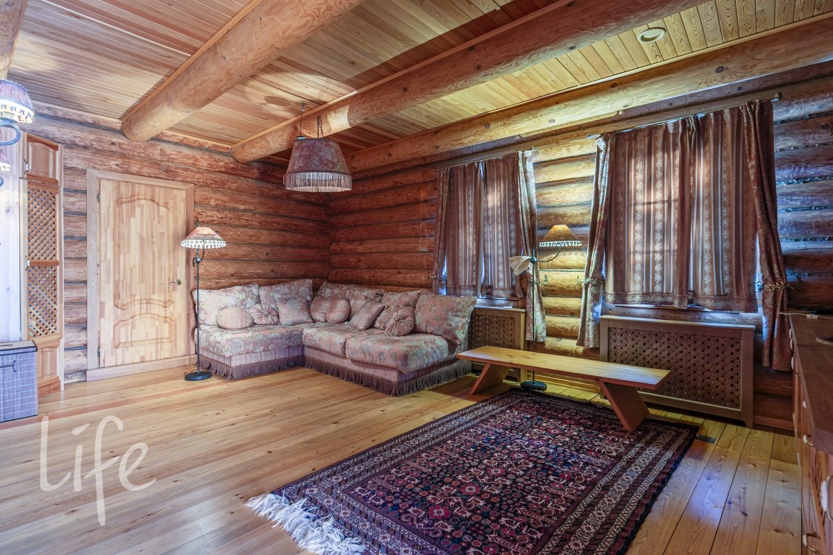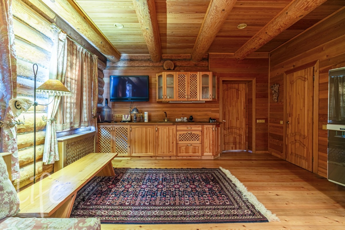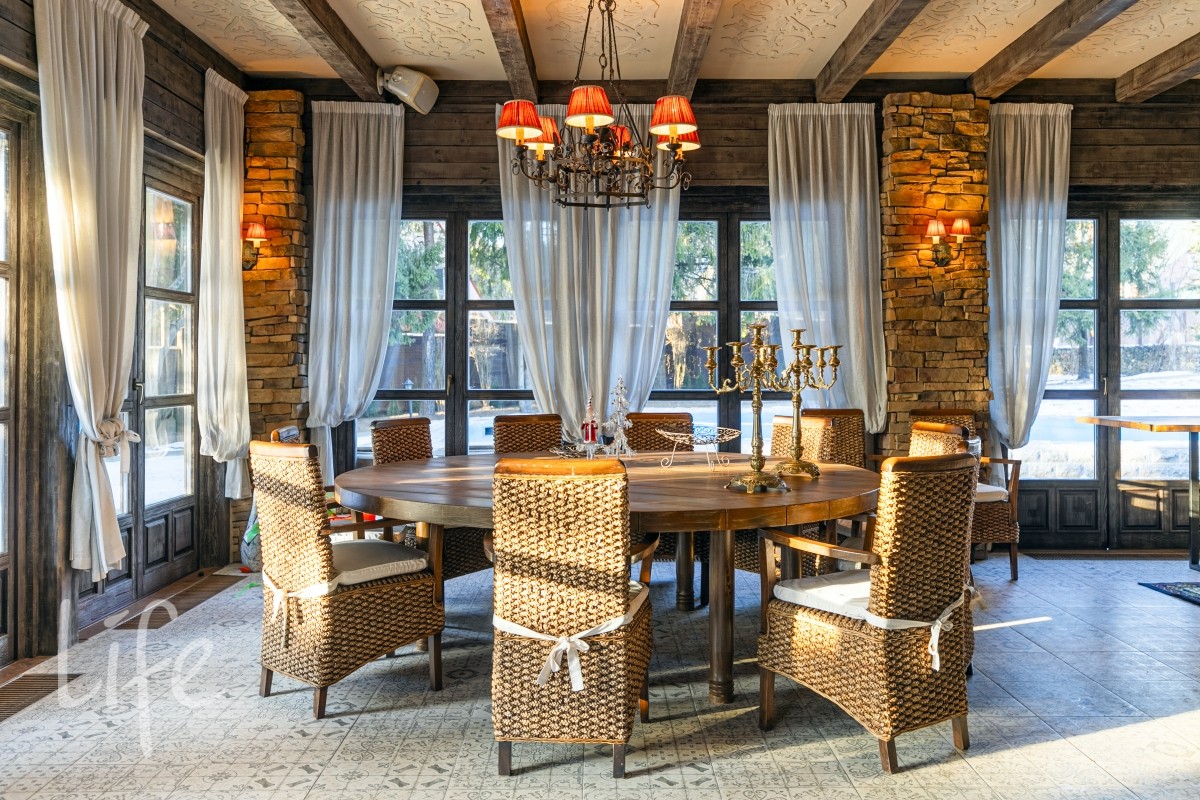 Весь 1-й этаж выложен травертином, полы с подогревом , стены - высокохудожественная состаренная отделка в тосканском стиле.