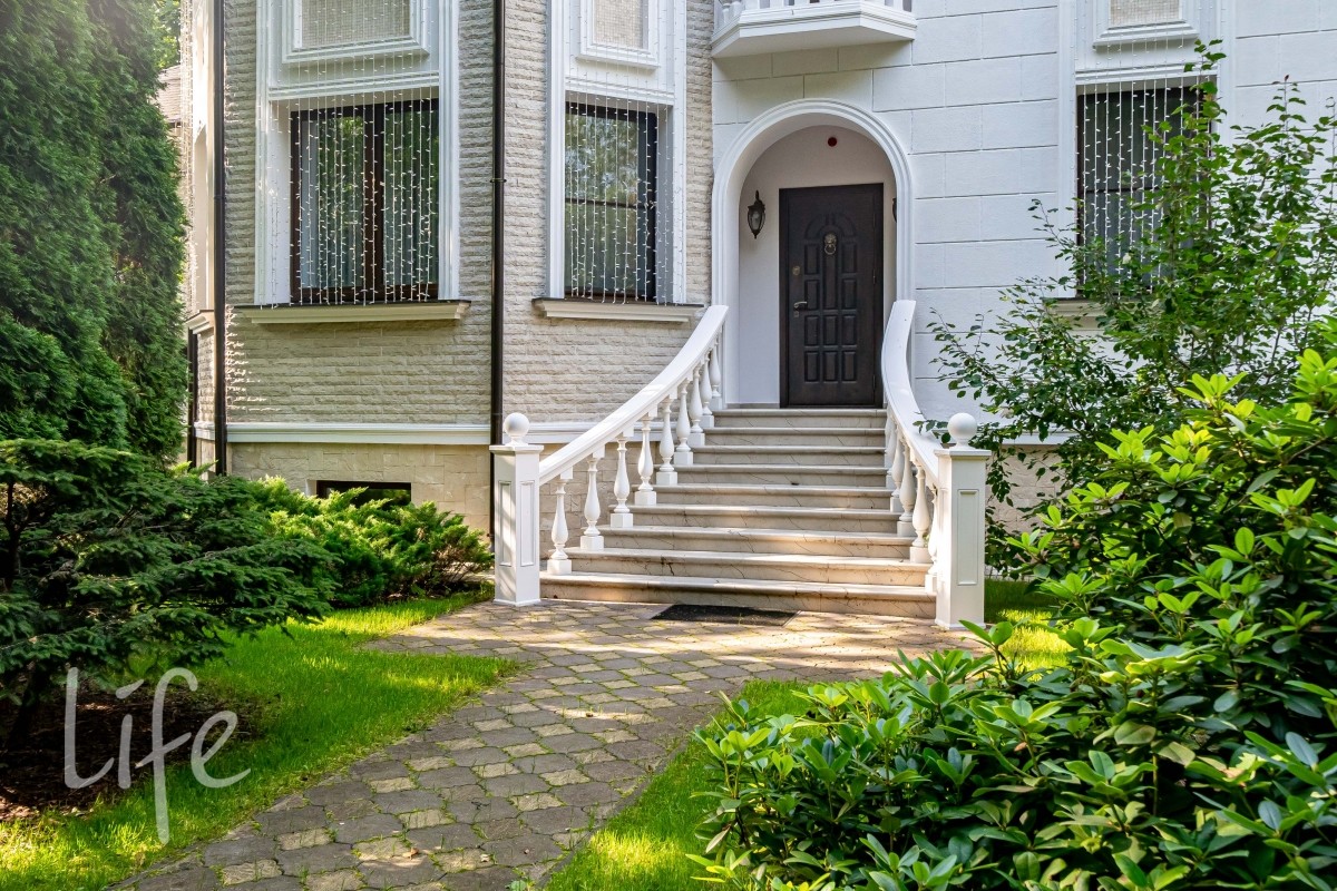 На лесном участке правильной формы площадью 20 соток расположены 3 строения: основной дом, гостевой дом с помещением для персонала и барбекю беседка. Выполнен ландшафтный дизайн, система авто полива. По периметру установлены датчики охраны и камеры.
