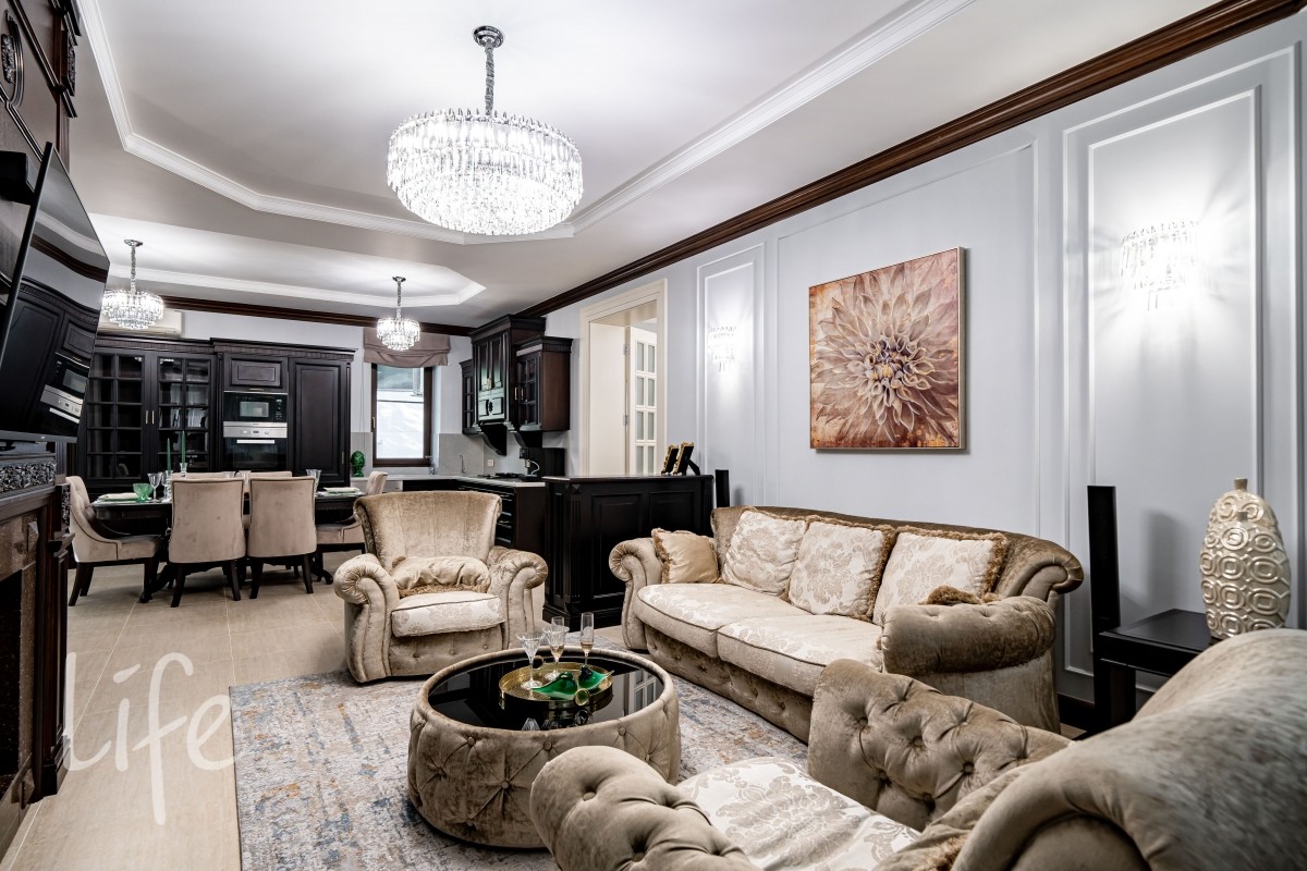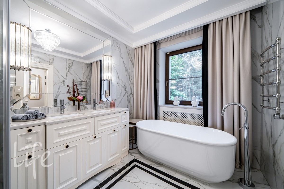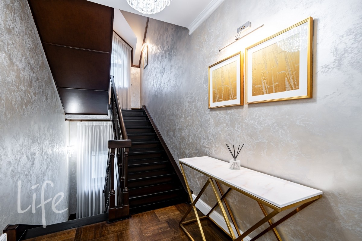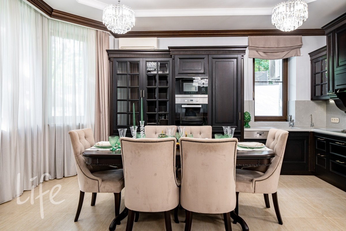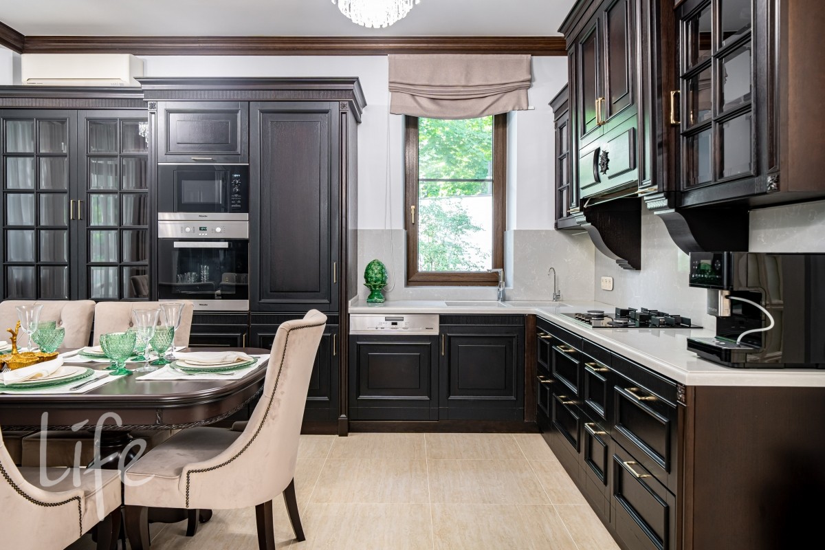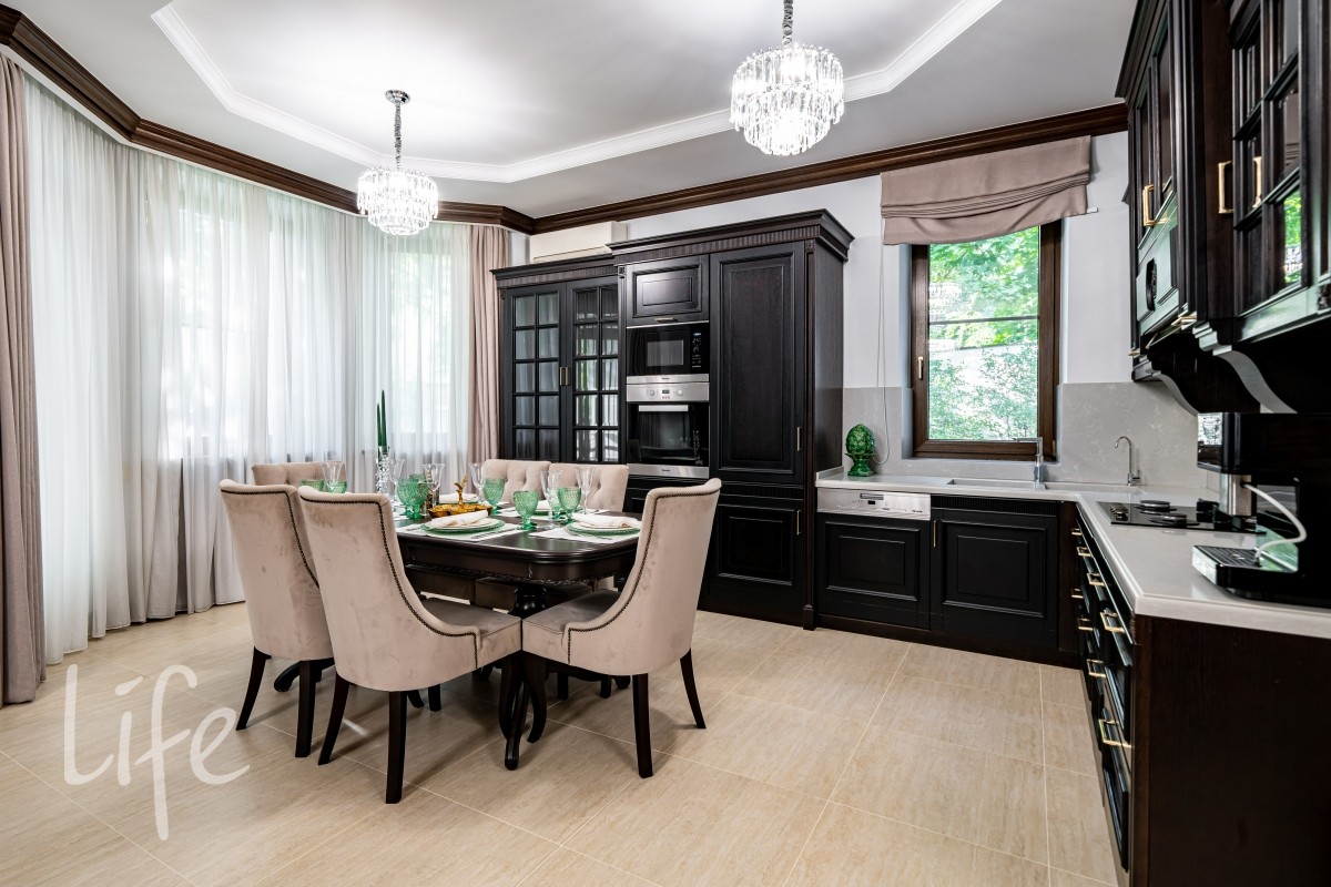 Внутреннее пространство декорировано в едином силе и продумано до мелочей, будущих владельцев ждет комфортная счастливая жизнь в загородной резиденции.