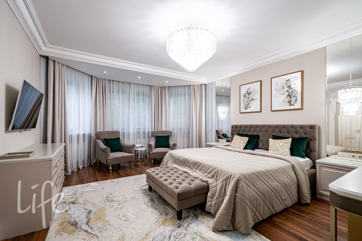 2 этаж: мастер-спальня с мужской и женской гардеробной, мастер-ванна, детская спальня, с/у.