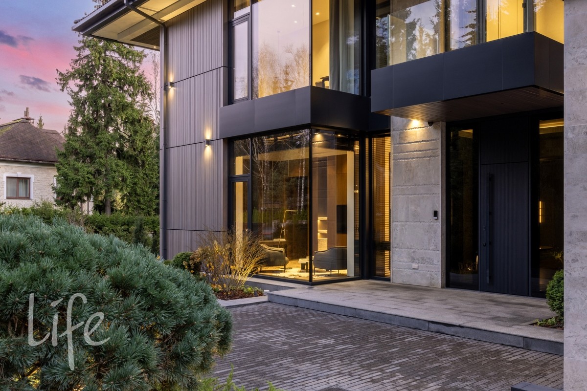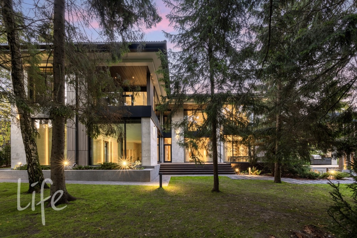 Эта резиденция — воплощение гармонии и покоя, спрятанное в сердце реликтового леса. Здесь тишина и приватность, словно сам лес оберегает это место. Солнечный участок с благородными соснами и двумя въездами сразу очаровывает. Проект не следовал трендам, а сам задавал вектор. Современная интерпретация архитектуры Райта с оттенком новаторства в фасаде. Дом, который остаётся вневременным.