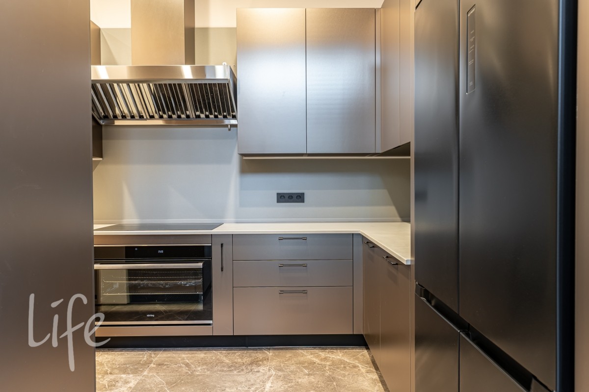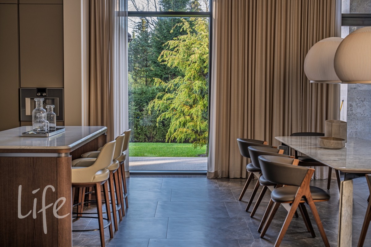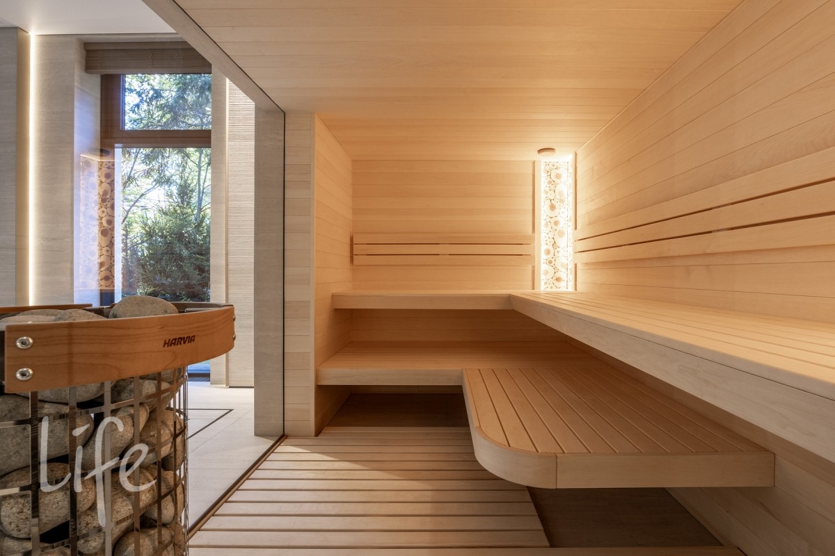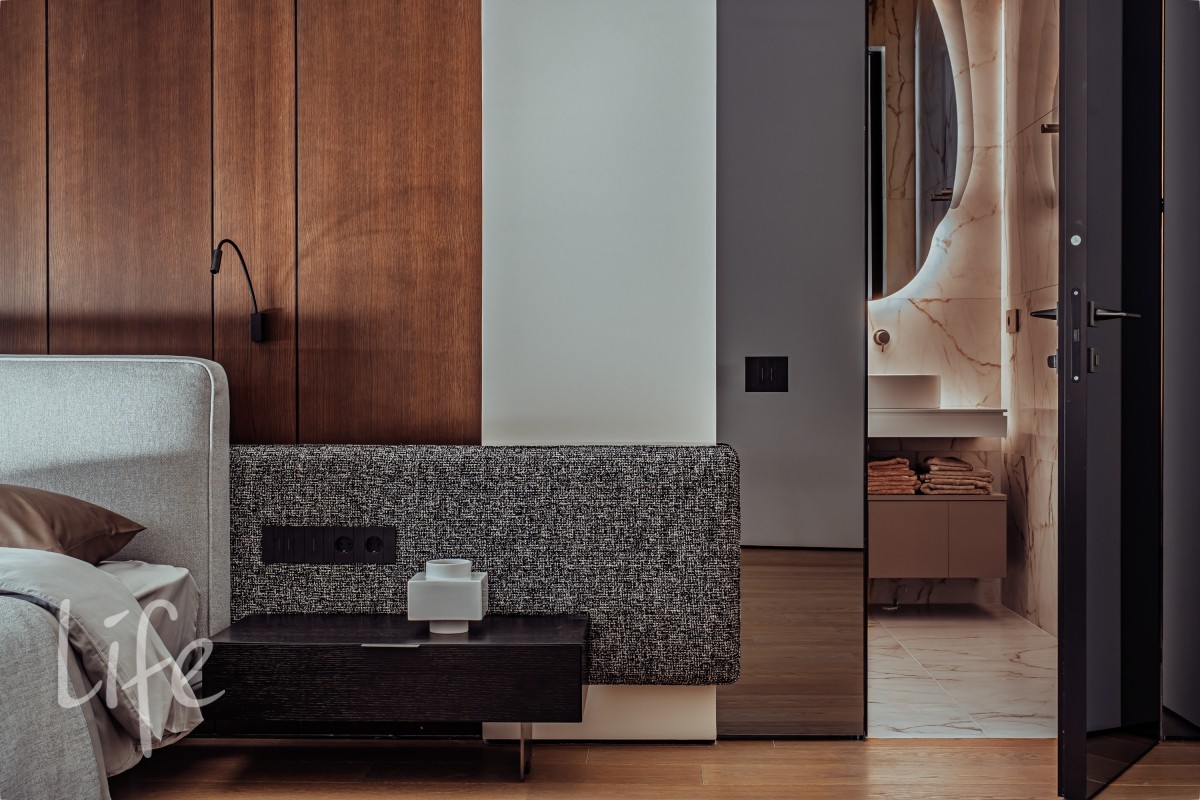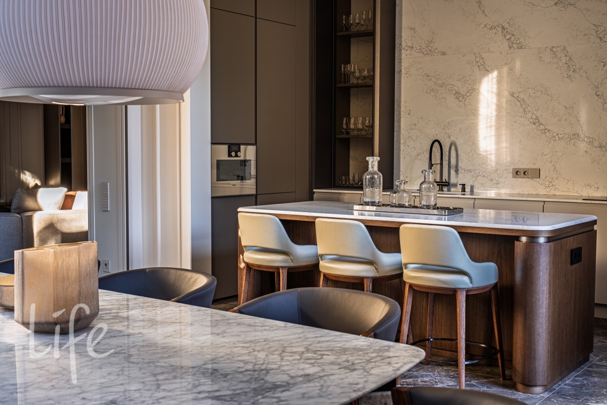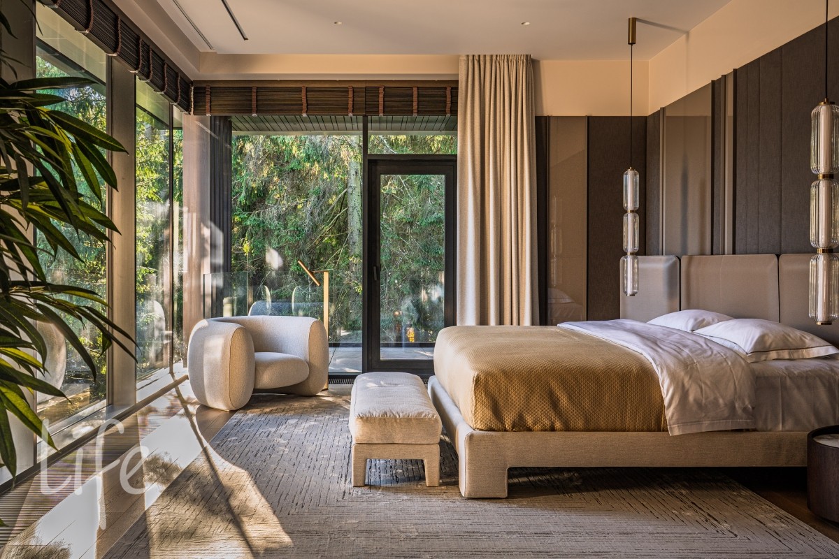 Интерьер — это симфония «тихой роскоши». Чистые линии переплетаются с продуманной функциональностью. Встроенные ниши в душевых и незаметная дверь в шеф-кухню добавляют таинственности. Здесь роскошь кроется в деталях, не только в мебели или сантехнике. Планировка разработана для большой семьи: Мастер-блок с двумя ванными и гардеробными, три детские спальни, гостевая, дополнительная комната, которую можно адаптировать под ваши задачи: ещё одну детскую, спортивную зону, игровую или второй кабинет — пространство остаётся свободным и даёт запас для будущего. Спа-зона с бассейном 12 м, хаммамом и сауной, рабочая кухня, отдельный блок для персонала и большая терраса, соединяющая дом с участком.