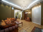 Интерьер выполнен в классическом стиле, со вкусом подобрана мебель и аксессуары. Гостиную украшает дровяной камин.