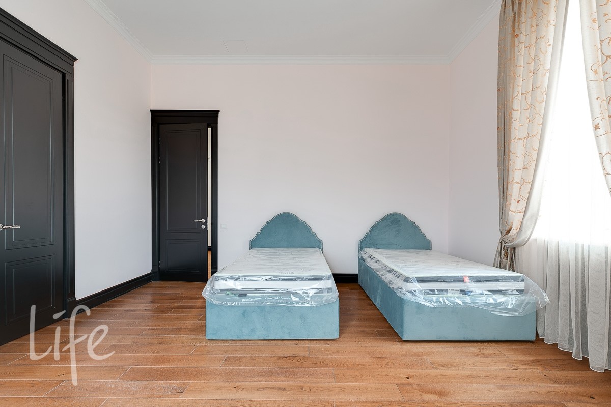 2 этаж: холл, 3 спальни с ванными и гардеробными комнатами, холл, кабинет/спальня, балкон.