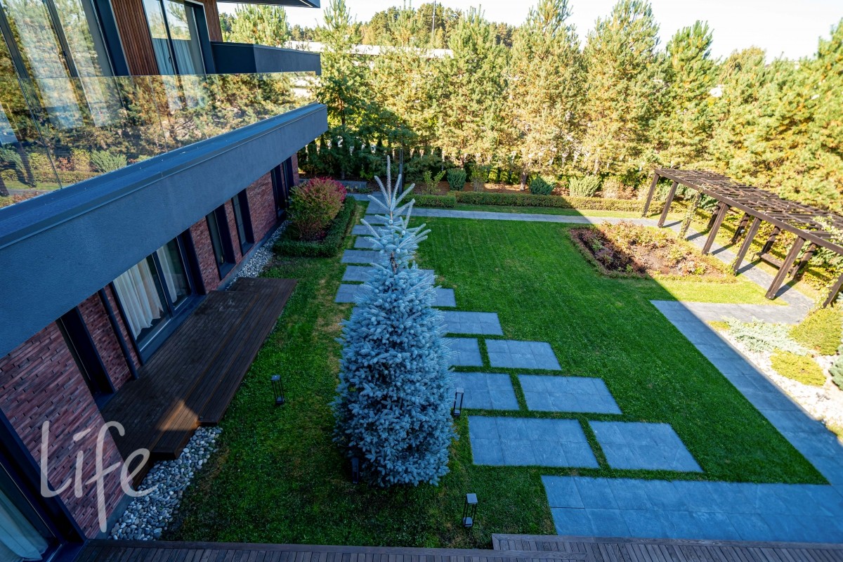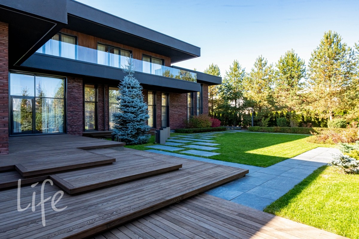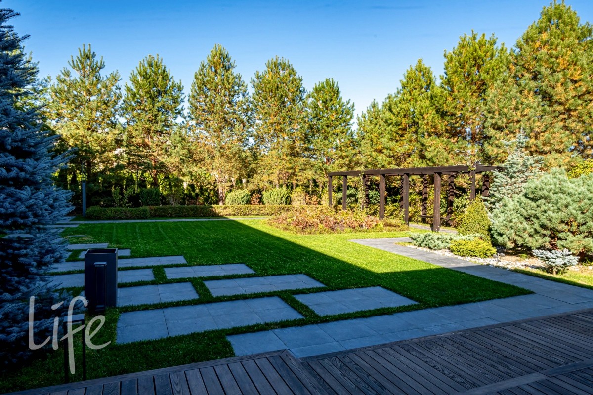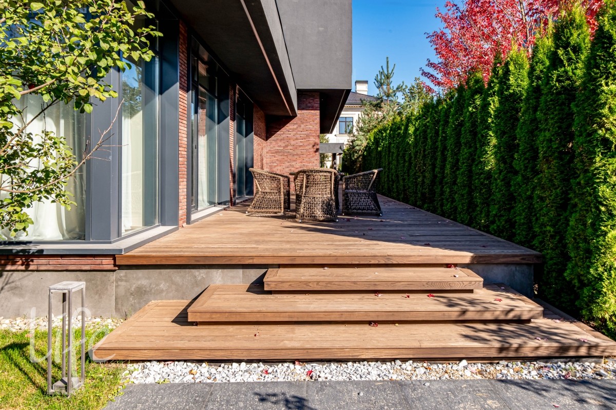 Участок правильной прямоугольной формы, выполнен ландшафтный дизайн. На территории расположены беседка, барбекю, уличная кухня оснащена техникой Bosch, грилем Napoleon, холодильником, посудомоечной машиной и грилем, навес на три автомобиля.