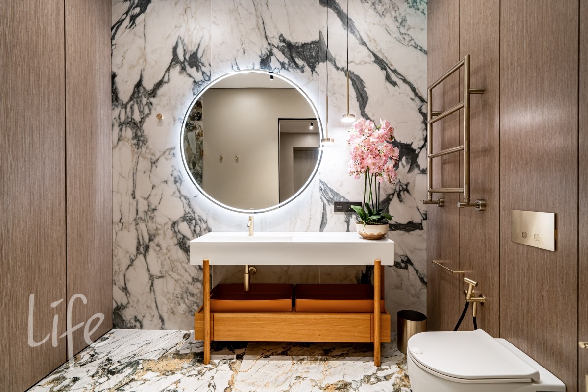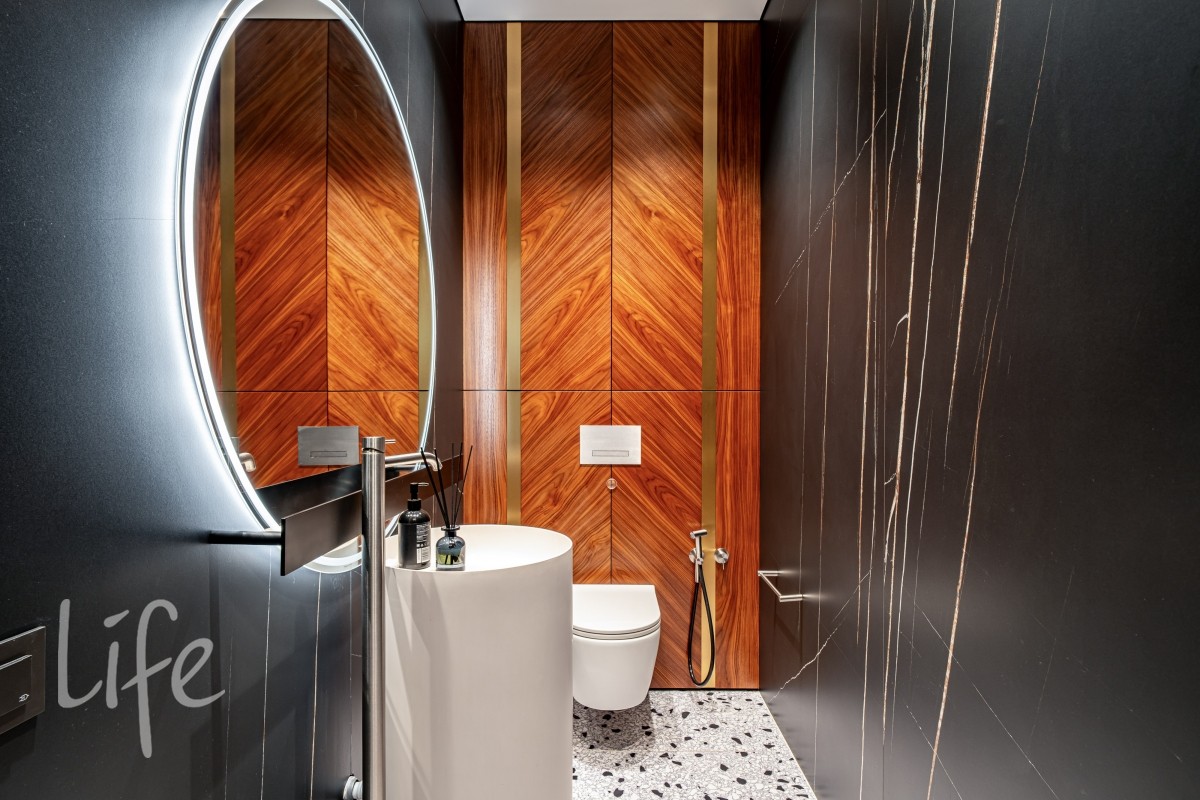 В строительстве и в отделочных работах использовались исключительно качественные дорогостоящие, премиальные материалы. Проект разработан студией "Prosvirin Design".