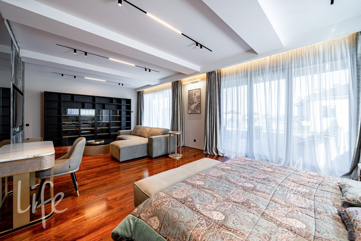 Комфортная планировка с четырьмя/шестью спальнями, гостиной подойдет большой для дружной семьи. А зона СПА с бассейном и сауной скрасит досуг.