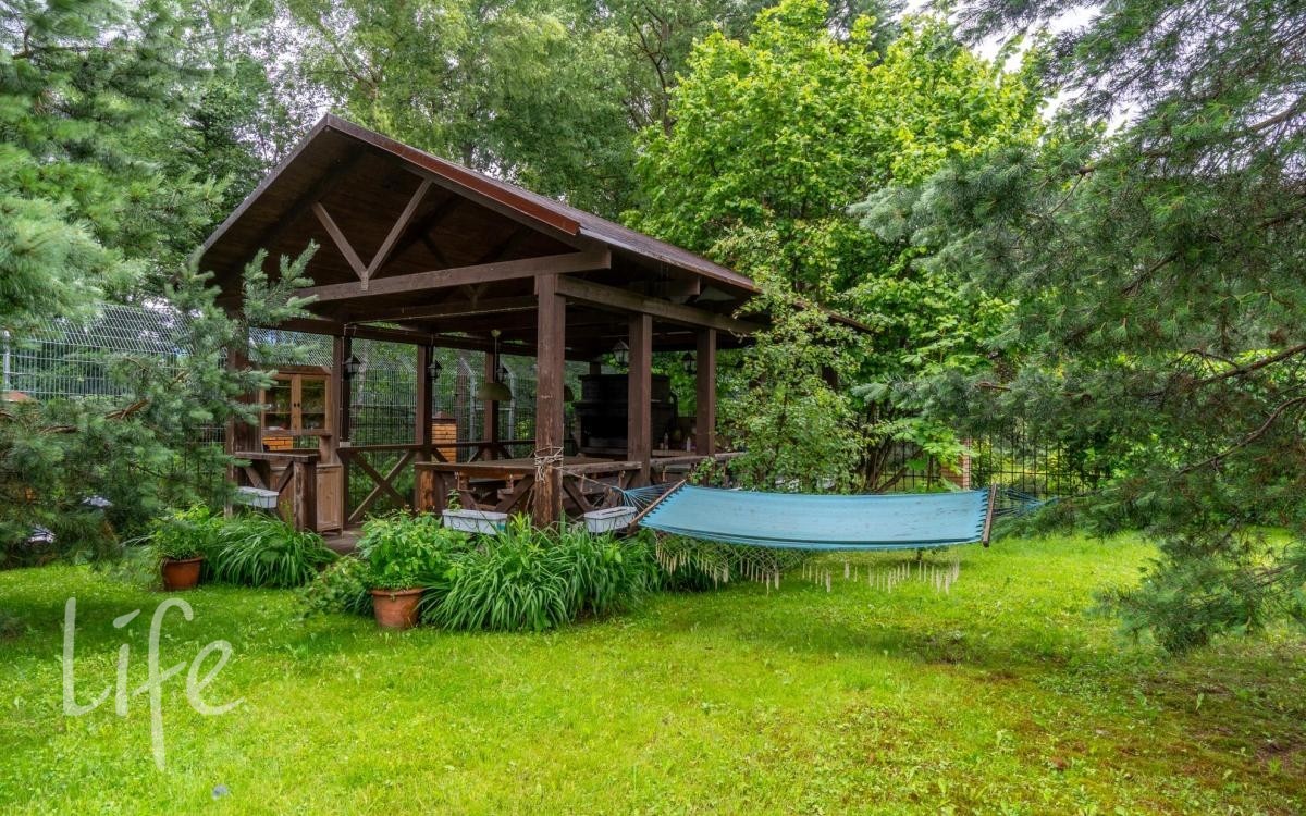 Просторный благоустроенный участок у леса с парковым ландшафтом, беседкой и большим тёплым гаражом.