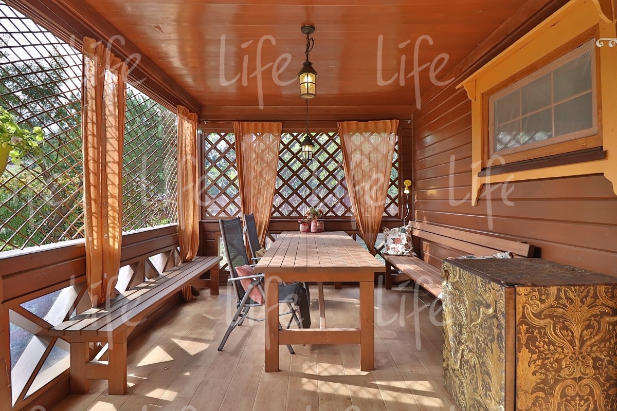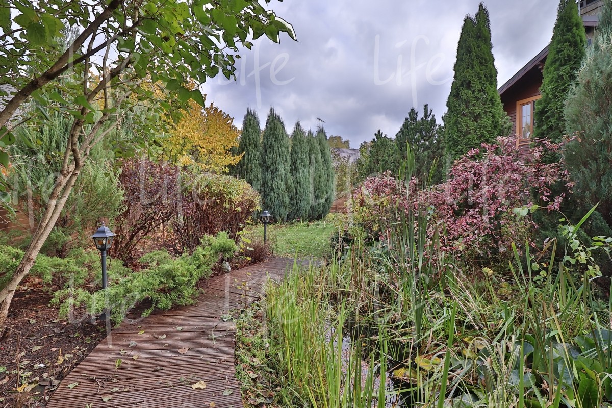 Участок правильной формы, декоративные, фруктовые деревья и кустарники, пруд, ухожен. На территории крытая парковка на два автомобиля, беседка, сарай для инвентаря.