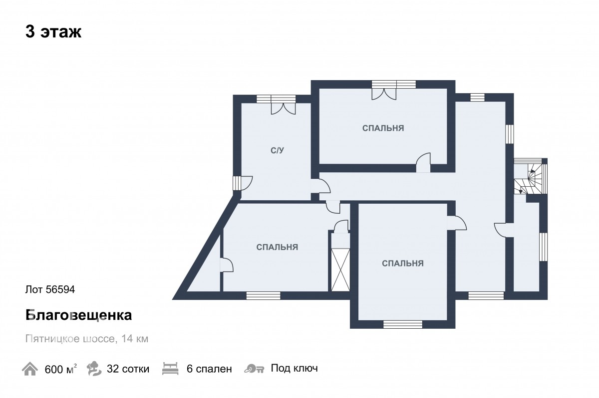 Мансарда: три спальни, с/у