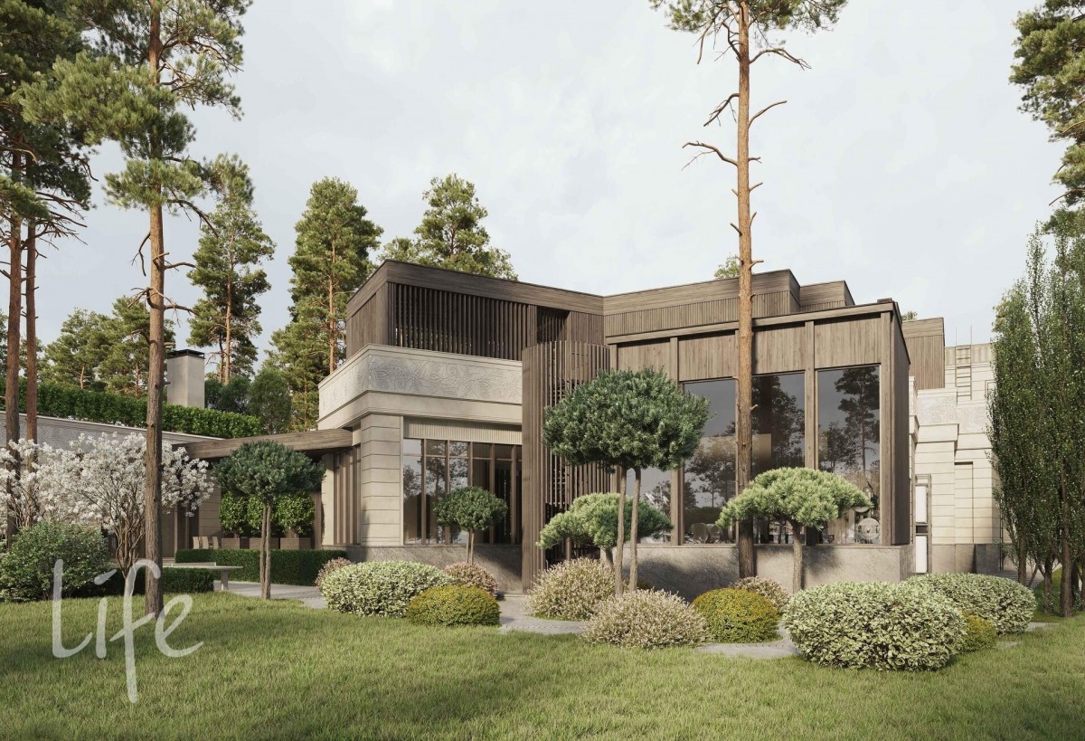 Цоколь: гараж, кладовая, кинотеатр, 4 с/у, постирочная, комната отдыха персонала, котельная, черновая кухня, кладовая для продуктов, 4 тех. помещения, сезонная гардеробная, лифт.