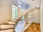 1 этаж: гостиная (23,3), кухня-столовая (21,1) с выходом на террасу (24), гардеробная (2,2), холл (9,2), котельная (5,7), с/у (3,2).