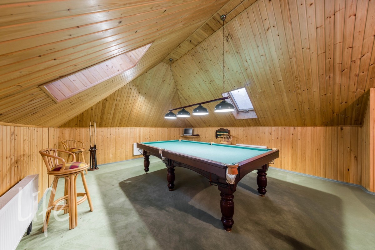 На территории находится отдельно стоящий гараж с двухкомнатной квартирой для персонала и русская деревянная баня с бильярдной.