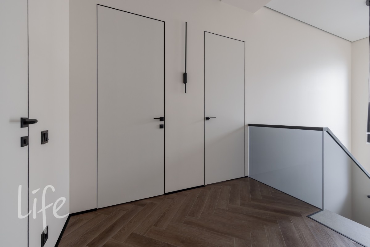 2 этаж: две детские спальни с гардеробами, с/у, мастер-спальня с с/у и гардеробной.