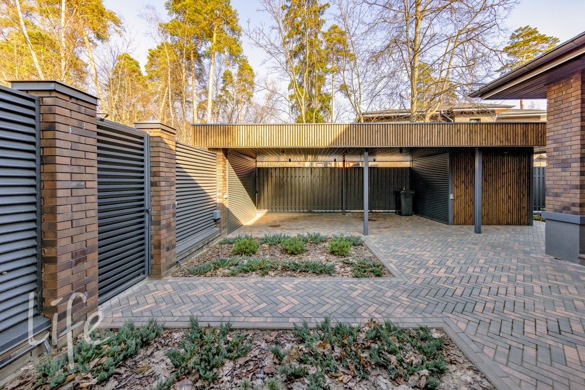Два отдельных въезда с автоматическими воротами. Во дворе мощение немецким клинкером.