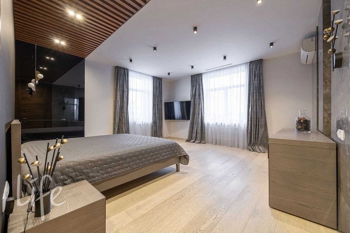 2 этаж: мастер-спальня с с/у, кабинетом и гардеробной, две спальни, с/у.