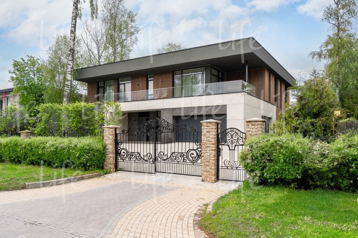 Элитный коттеджный поселок «Монтевиль». Новый дом в стиле хай-тек, полностью под ключ, меблирован и оборудован всей необходимой бытовой техникой. Панорамное остекление, плоская кровля, открытая веранда.
