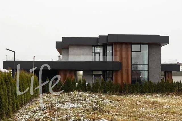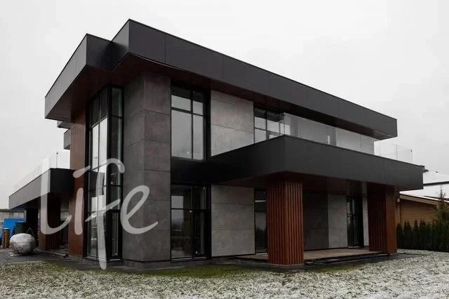 Охраняемый поселок. Современный новый дом в стиле хай-тек, под внутреннюю отделку, панорамное остекление, плоская кровля.