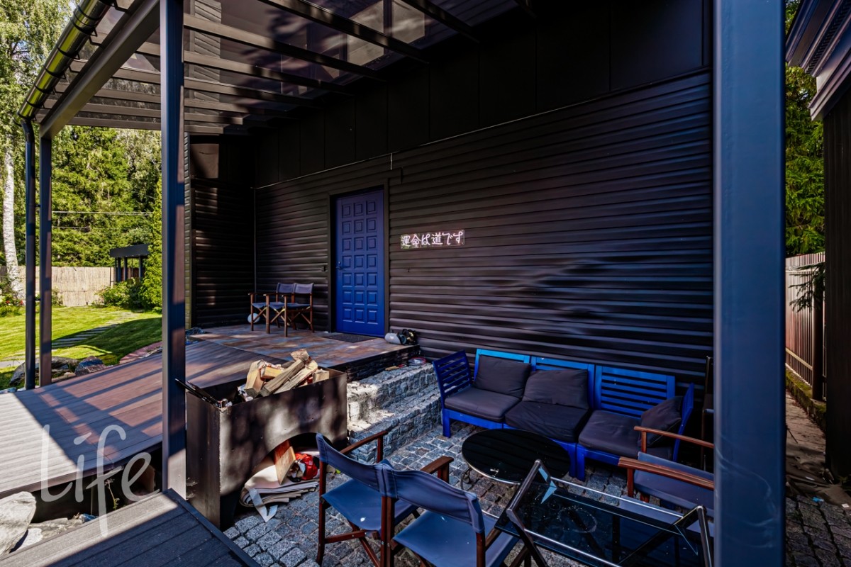 Кроме жилого дома на участке расположена баня с мастерской, отдельный гараж с жилой комнатой и крытая парковка на 2 ам