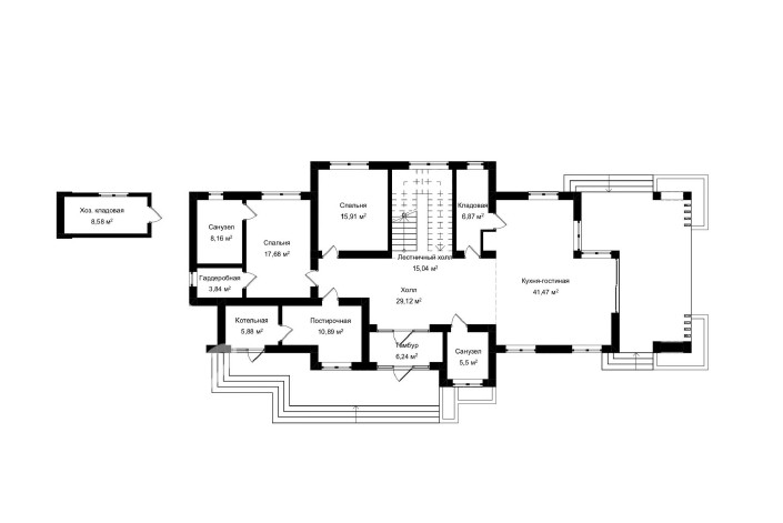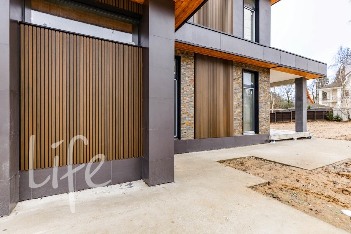 Дом, общей площадью 471кв.м, 6 спален, 5 с/узлов, гардеробные, высота потолков на каждом этаже по 3,40 метра, панорамное остекление, продуманная удобная планировка, большие открытые террасы! В доме много простора и воздуха!