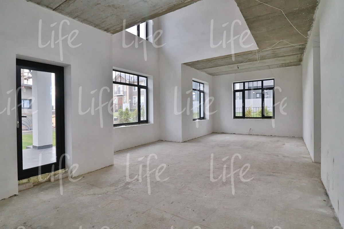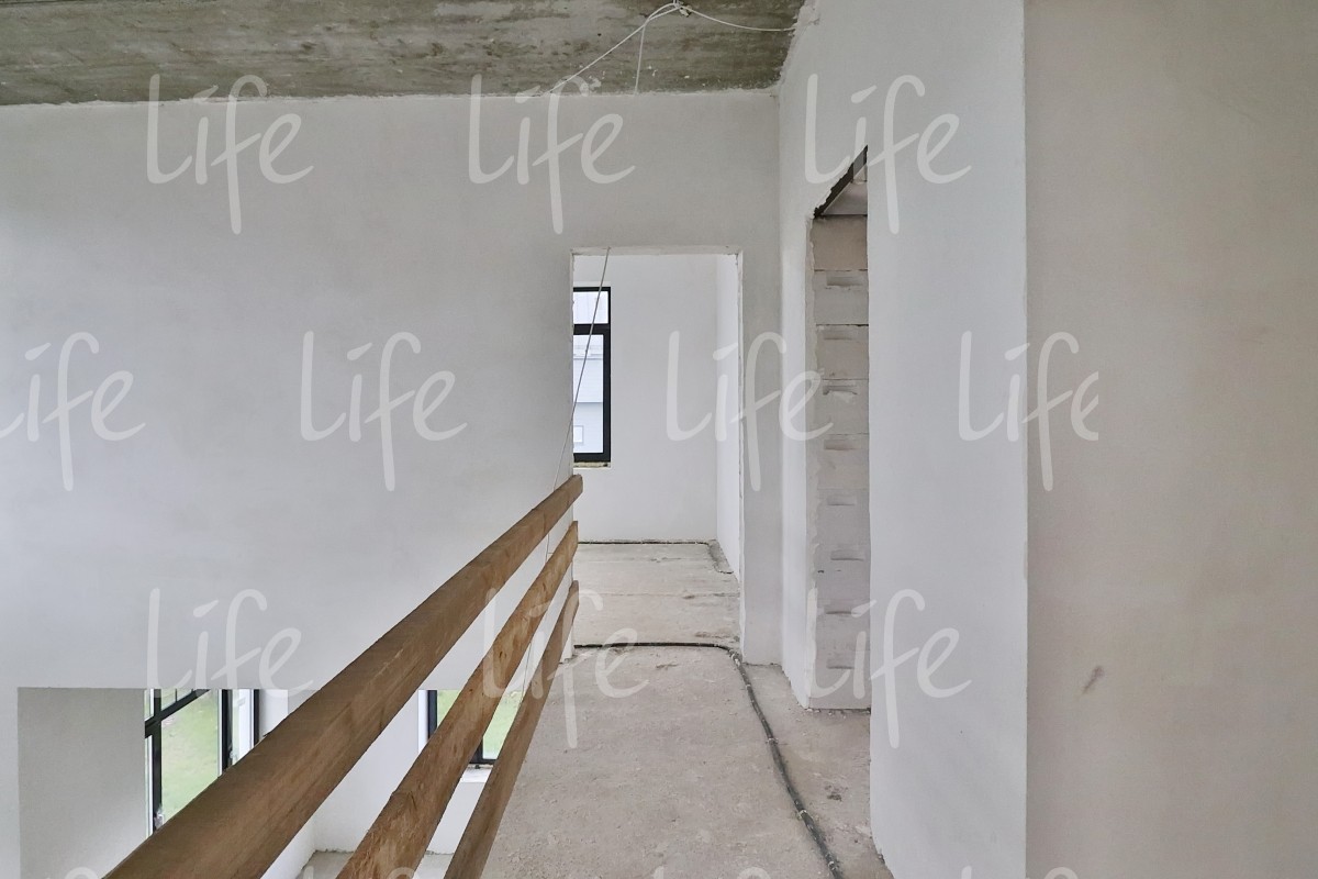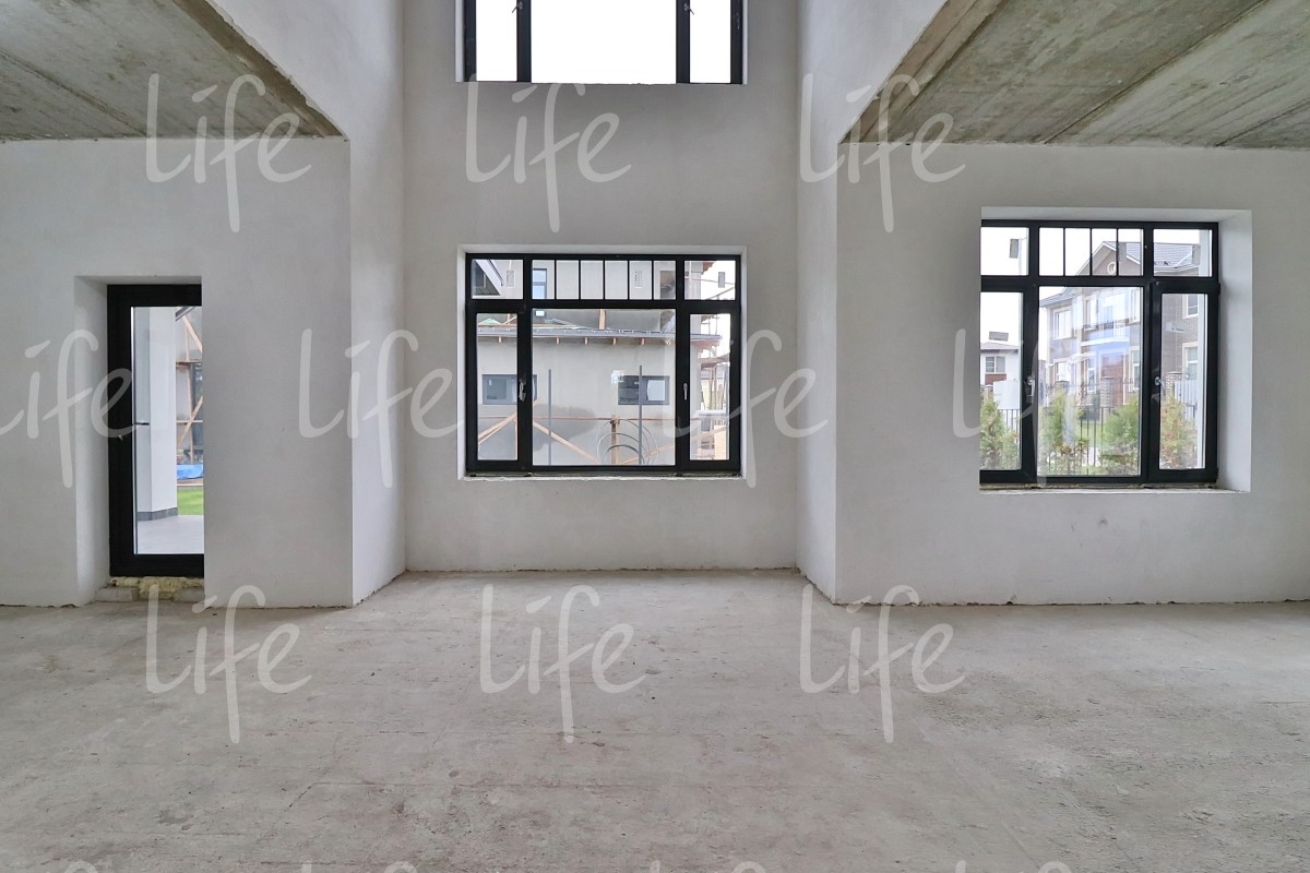 Новый дом с завершенными фасадными работами, под внутреннюю отделку. Стены внутри дома оштукатурены.