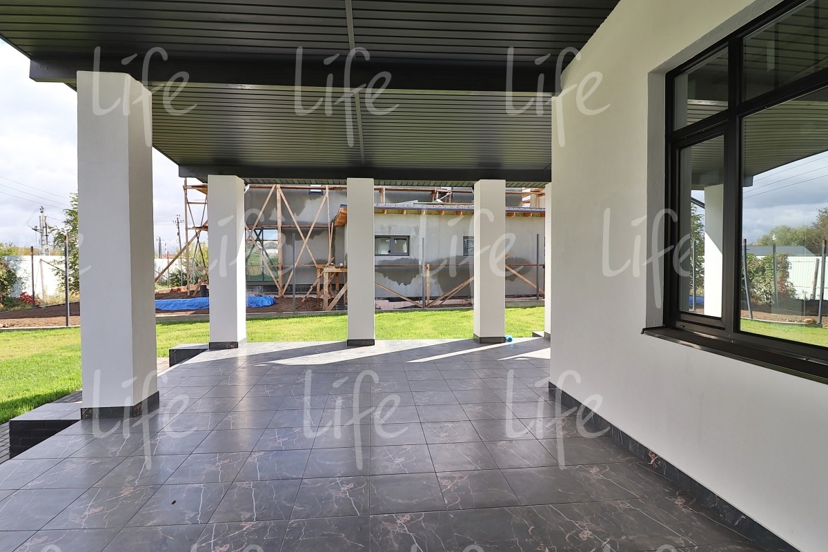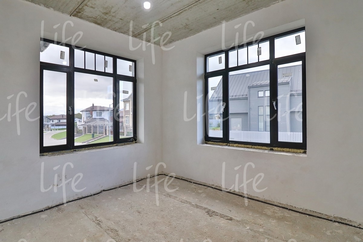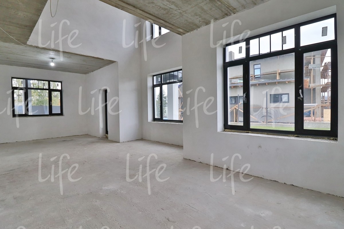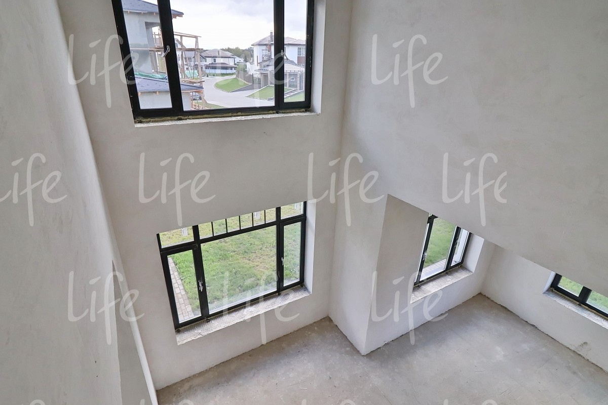 Новый дом с завершенными фасадными работами, под внутреннюю отделку. Стены внутри дома оштукатурены.