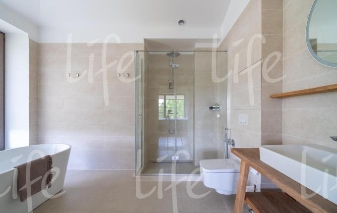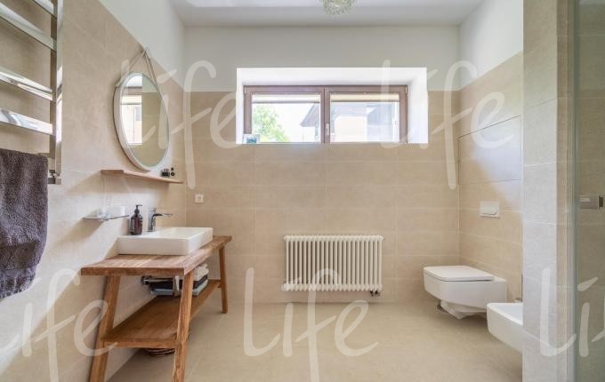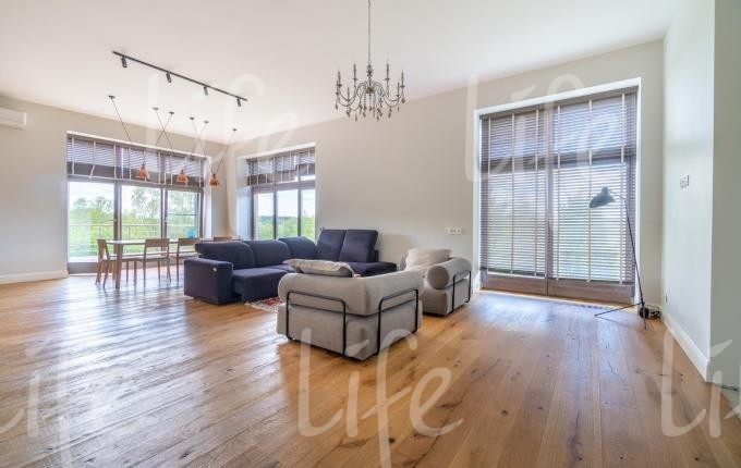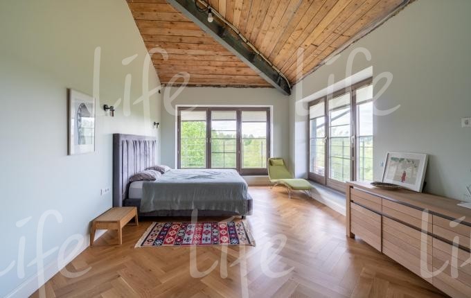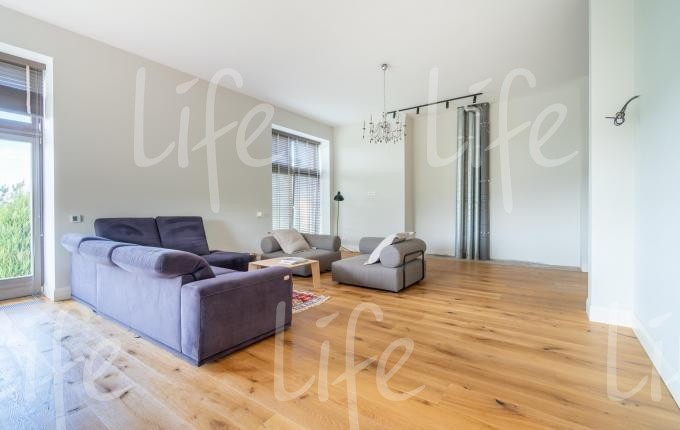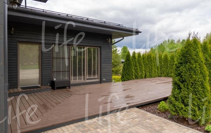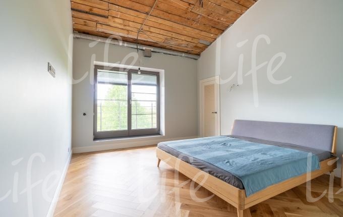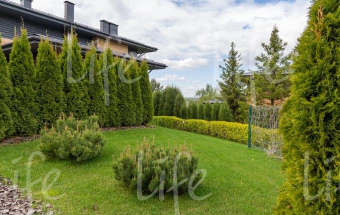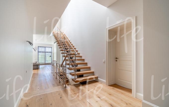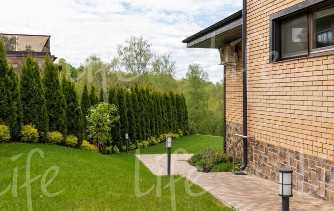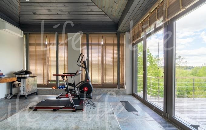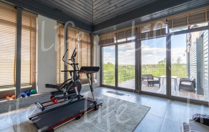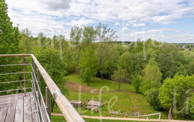 массива дерева. Дом стоит на просторном лесном двухуровневом участке с профессиональным ландшафтом, с выходом к реке, в клубном коттеджном посёлке премиум-класса с богатой собственной инфраструктурой.