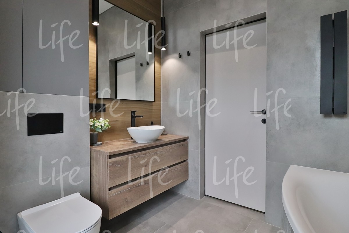 Комфортная планировка с четырьмя спальнями, гостиной, большими террасами подойдет для большой, дружной семьи. А сауна с купелью, расположенной на террасе, скрасит будни проживающих.