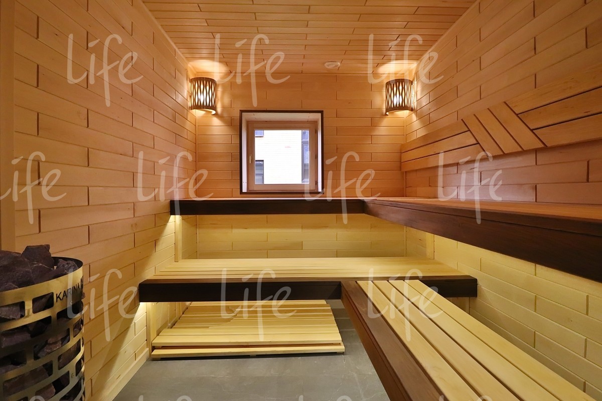 1 этаж: прихожая, гардеробная, холл, гостиная-кухня-столовая с выходом на летнюю террасу, спальня/кабинет, с/у, сауна, котельная, постирочная, гараж на один автомобиль.