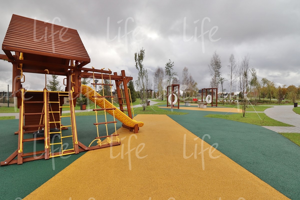 Территория поселка находится под круглосуточной охраной и видеонаблюдением, а въезд осуществляется только по пропускам. На ухоженной и зеленой территории расположено озеро с собственным пляжем и набережной, современные детские и спортивные площадки, зоны для прогулок и отдыха, а также собственный развлекательный центр и гостевые парковки. В поселке есть продуктовый магазин.