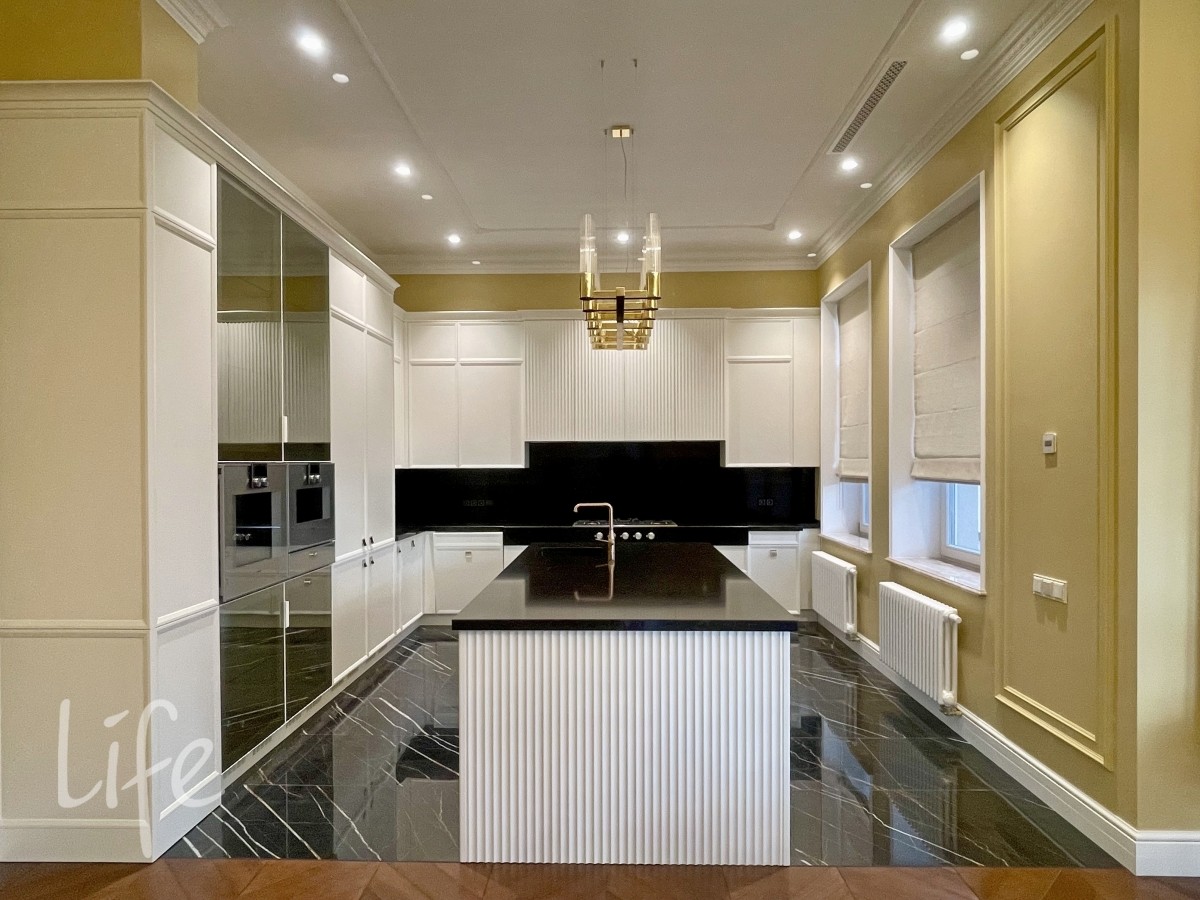 Новый жилой дом и внутренняя отделка в нем делались исключительно для личного проживания, а не для продажи. В отделке дома использованы современные технологии, материалы: мрамор, латунь, дерево премиальных пород и инженерия. Мебель ведущих итальянских фабрик: кухня - Castagna, ванные комнаты - Oasis.