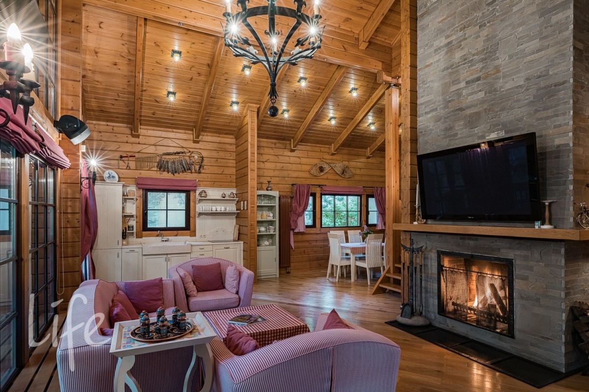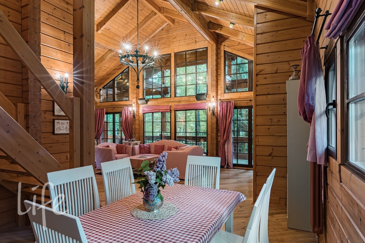 Гостевой дом из бруса (Контио) 137 кв.м.- гостиная с вторым светом, кухней, спальня с с/у, гостевой с/у, душевая, русская баня, хаммам, купель на улице.