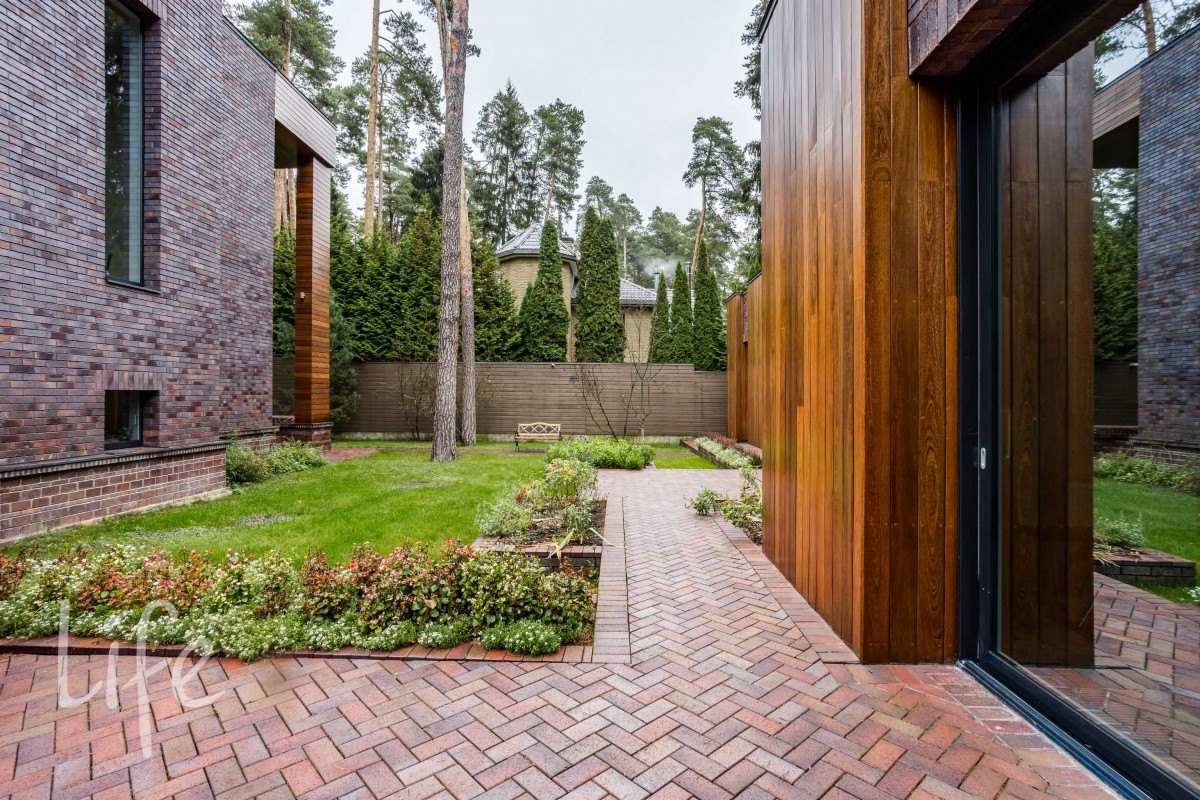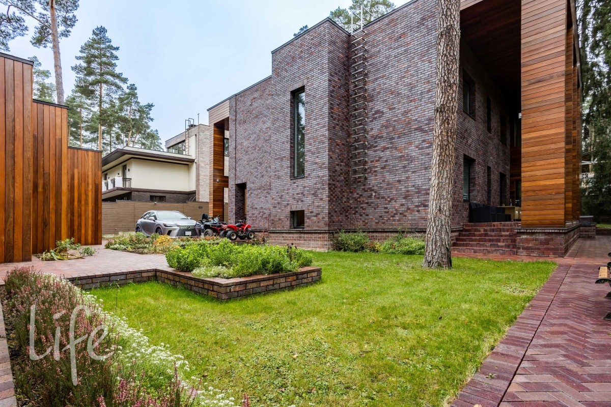 Просторные комнаты, качественная отделка, большая гостиная для проведения времени с семьей и друзьями. В доме 5 спален, блок для персонала в цоколе, кабинет и большая кухня с панорамными окнами и выходом на летнюю террасу, где оборудована зона барбекю.