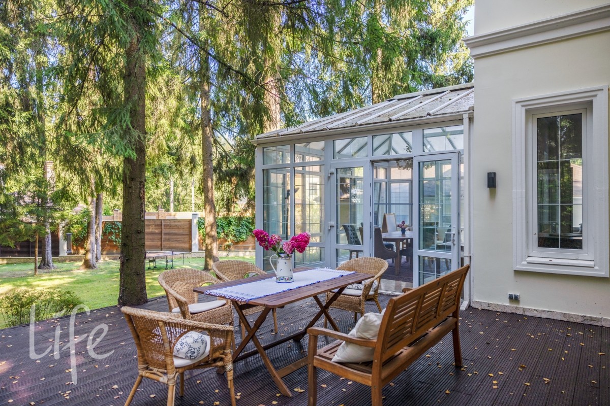 Просторный дом в охраняемом коттеджном поселке СНТ «Вузсервис», всего в 19 км от МКАД, в окружении живописного елово-соснового леса. Поселок оснащён всеми необходимыми коммуникациями, охраняется и располагает футбольным полем и детской площадкой и небольшим прудом, где дети любят кататься на коньках и санках зимой.